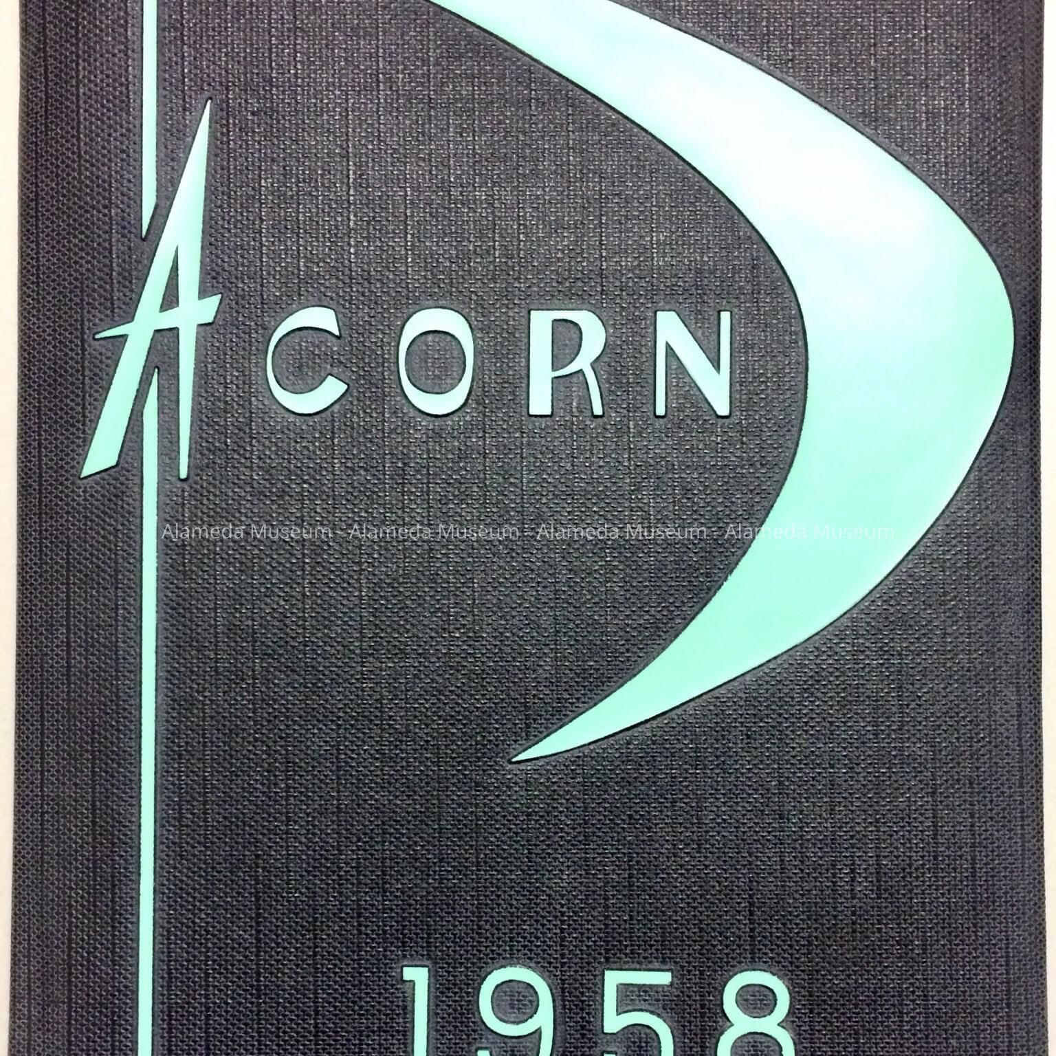 AN ILLUSTRATED 1958 EDITION OF THE ALAMEDA HIGH SCHOOL YEARBOOK, "ACORN." THIS PARTICULAR COPY WAS PRESENTED TO DR DONALD M RODERICK, ALAMEDA BOARD OF EDUCATION, ON JUNE 6, 1938. THE YEARBOOK IS ACCOMPANIED BY A PRESENTATION LETTER AND ENVELOPE (01.141.38B). THE PRESENTATION WAS MADE BY THE STAFF OF THE YEARBOOK.