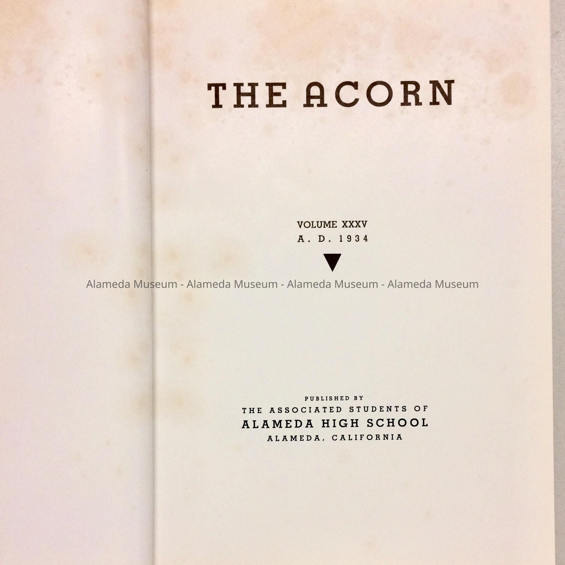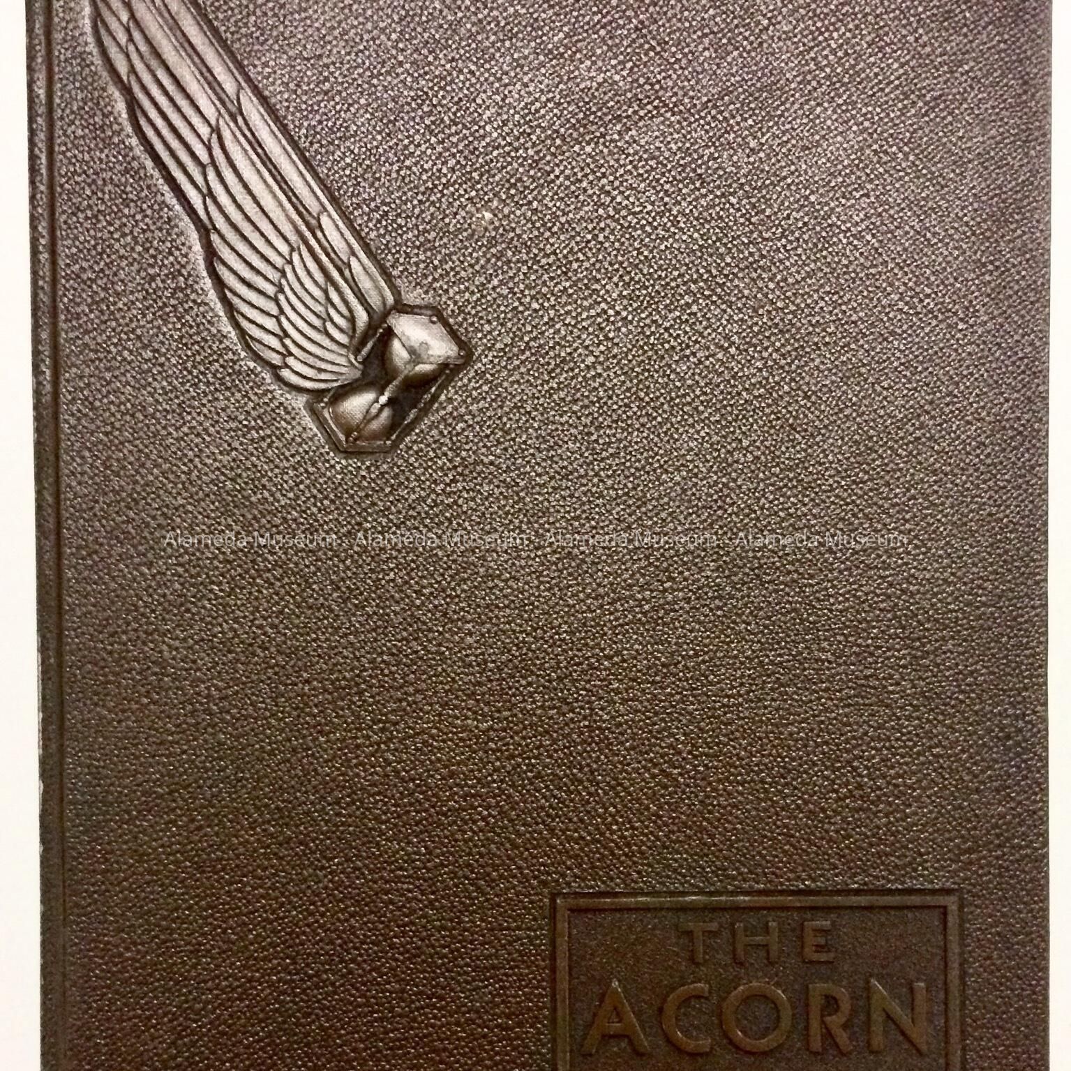 A. BLACK-COLORED IMITATION LEATHER-COVERED YEARBOOK, WITH EMBOSSED LETTERING, "THE ACORN, 1934."