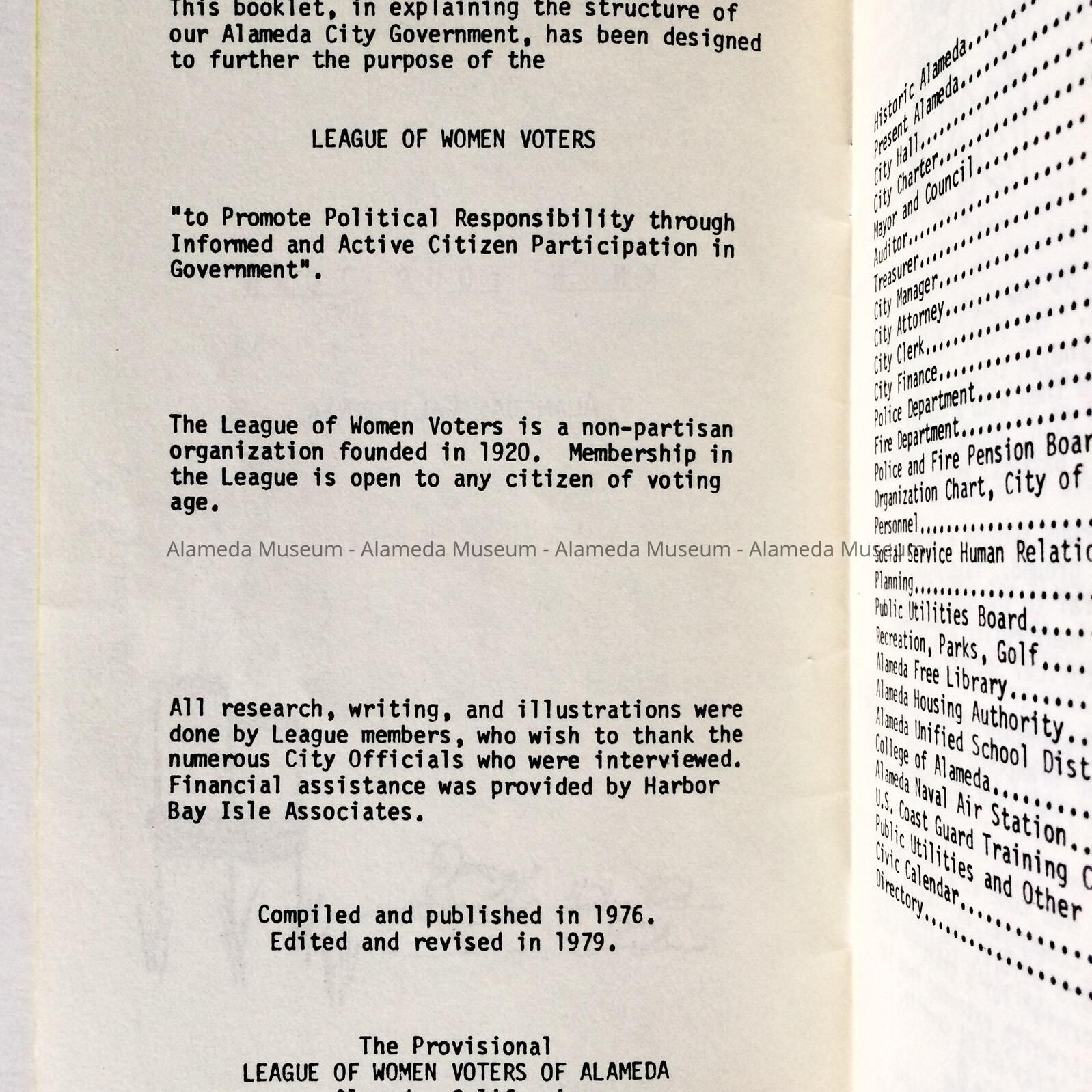 'Alameda, know your town', issued by League of Women Voters, c. 1979Entry/Object ID