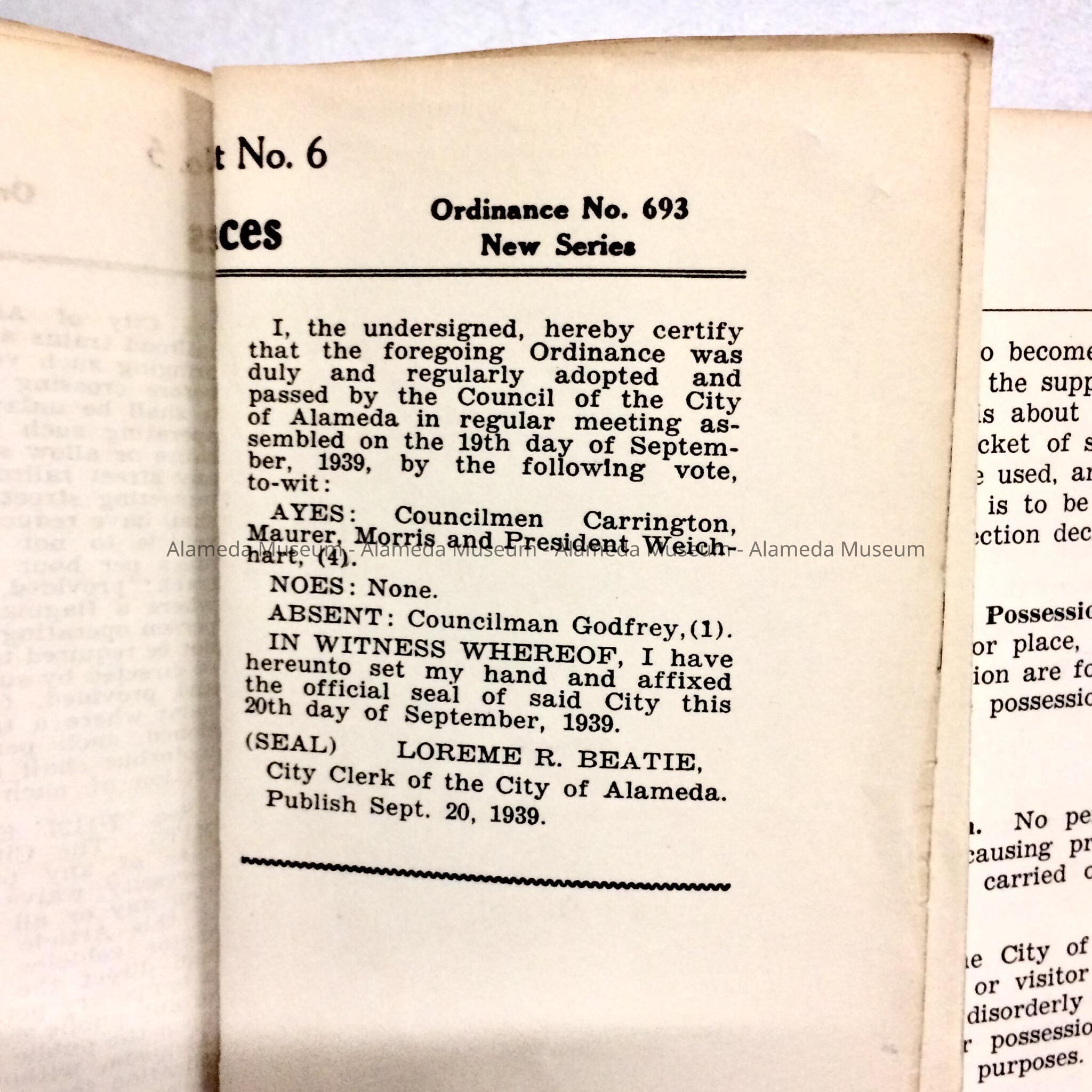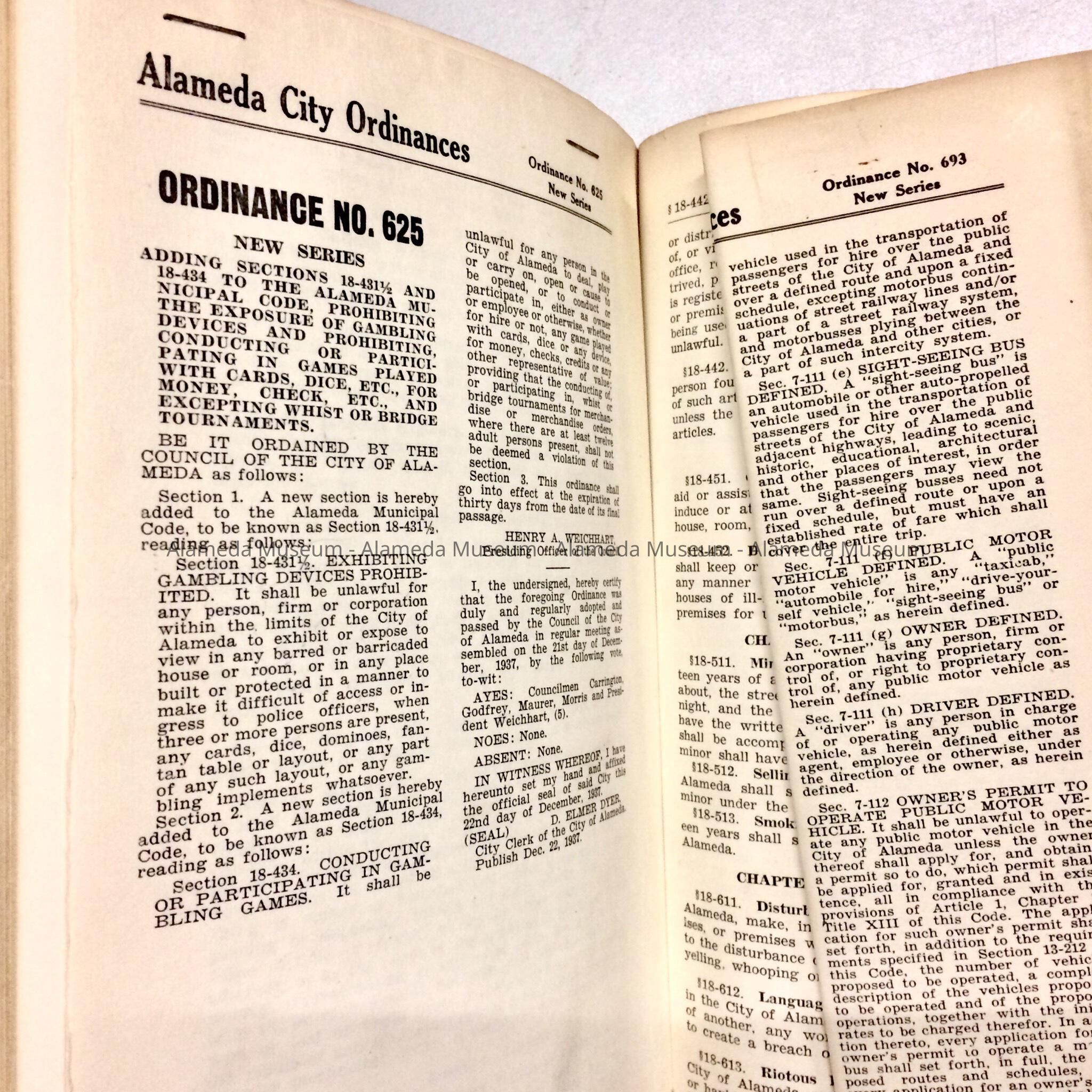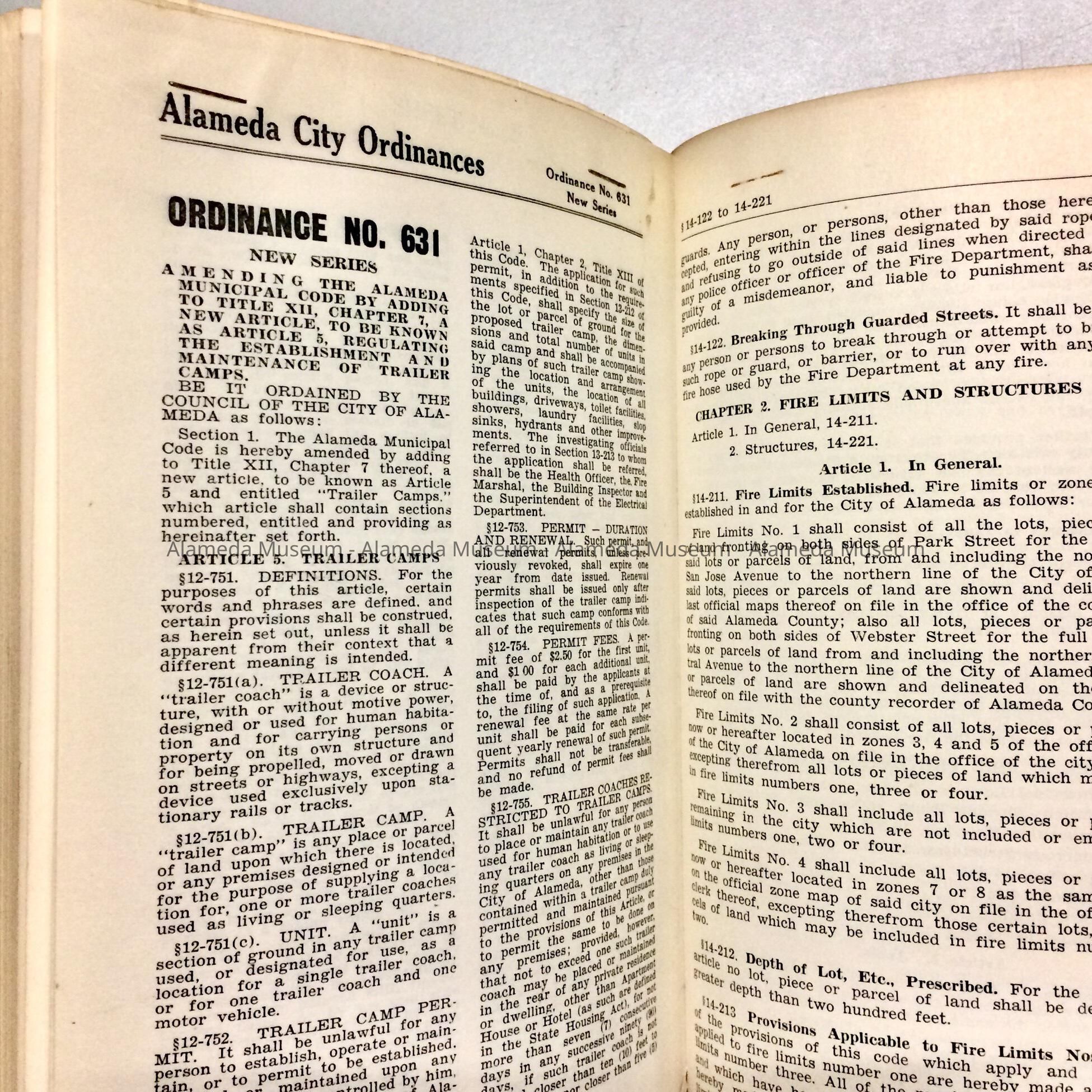History of Object: Copy of the Alameda Municipal Code, City of Alameda, 1935.