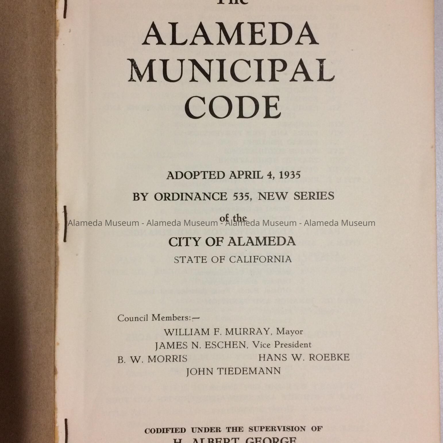 Alameda Municipal Code book, adopted 1935Entry/Object ID