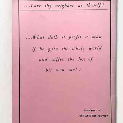 Description: Soft bound booklet with pink colored cover of heavy stock paper, caption: "Pink Pages" in black colored type on pink colored background.