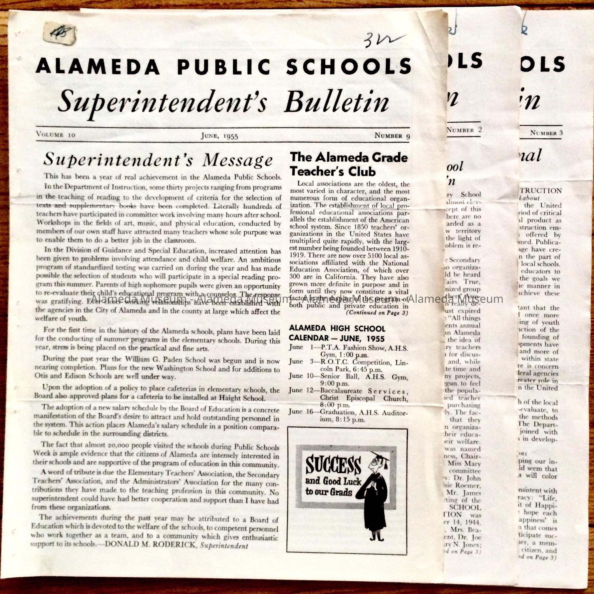 Alameda Public Schools Superintendent Bulletins June-Dec. 1955Entry/Object ID