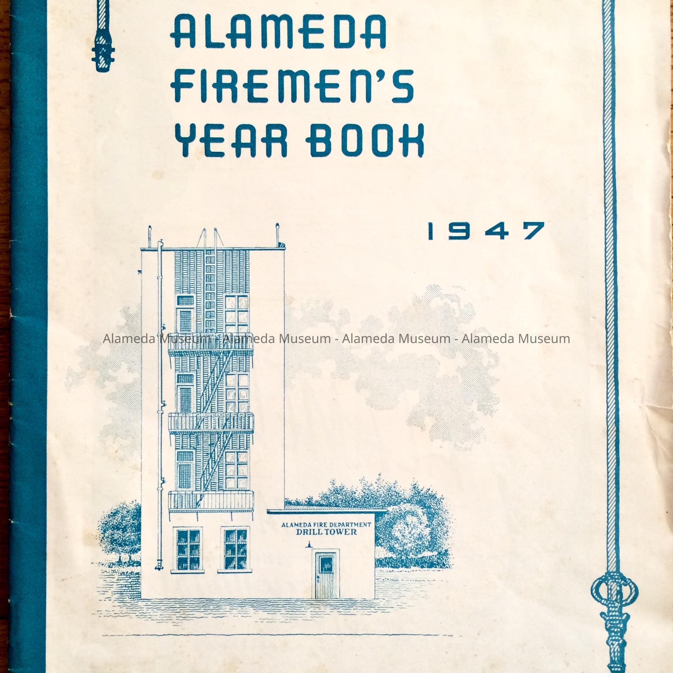 DESCRIPTION: A SOFT-BOUND MAGAZINE WITH COVER DESIGN FEATURING THE DRILL TOWER OF THE ALAMEDA FIRE DEPARTMENT AND A BOLD PRINTED CAPTION, "ALAMEDA FIREMEN'S YEARBOOK, 1947" IN BLUE-COLORED TYPE ON WHITE-COLORED BACKGROUND.