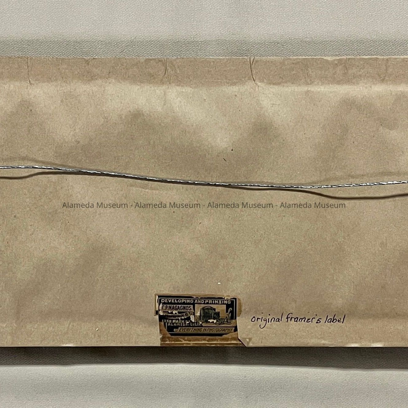 Description: Oblong photo in dark gold frame with embossed gesso patterns of stylized leaves. Photo taken by T. C. Wohlbruck, Mill Valley, Calif, inscribed in lower right corner.