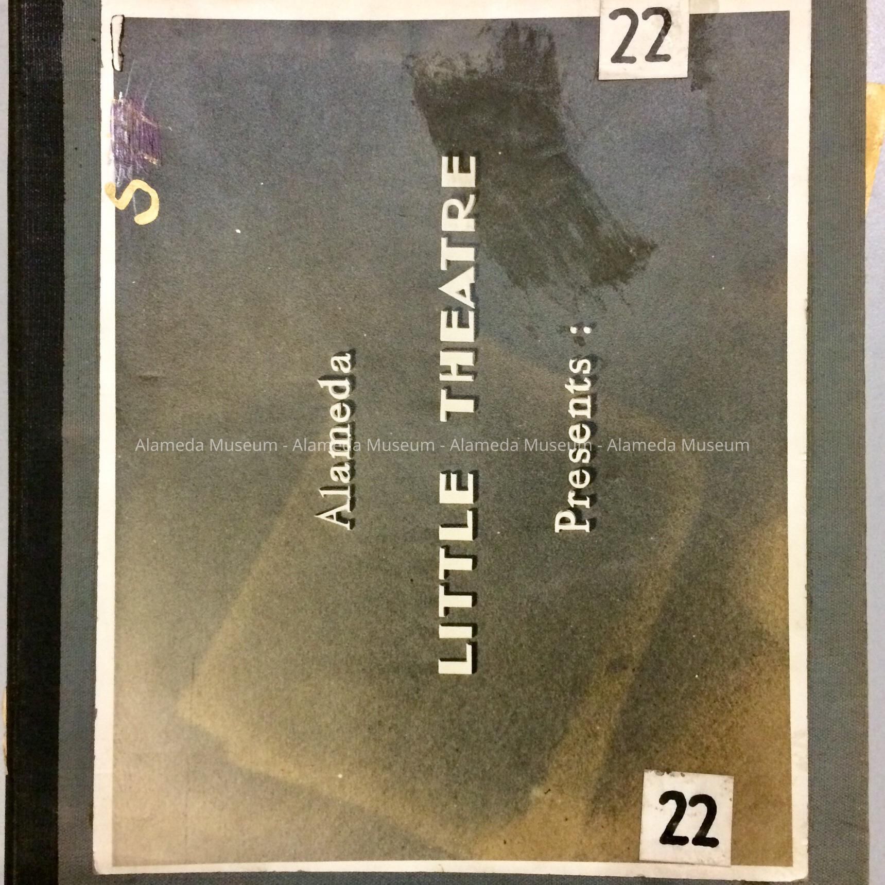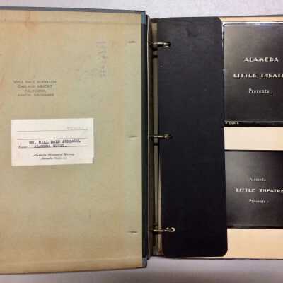 THREE-RING BINDER, WITH COVER OF PALE BLUE-COLORED BUCKRAM. PHOTOGRAPHIC TITLE ON COVER STATES, "ALAMEDA LITTLE THEATRE PRESENTS.".