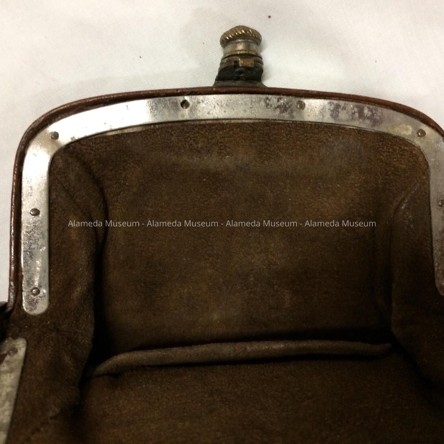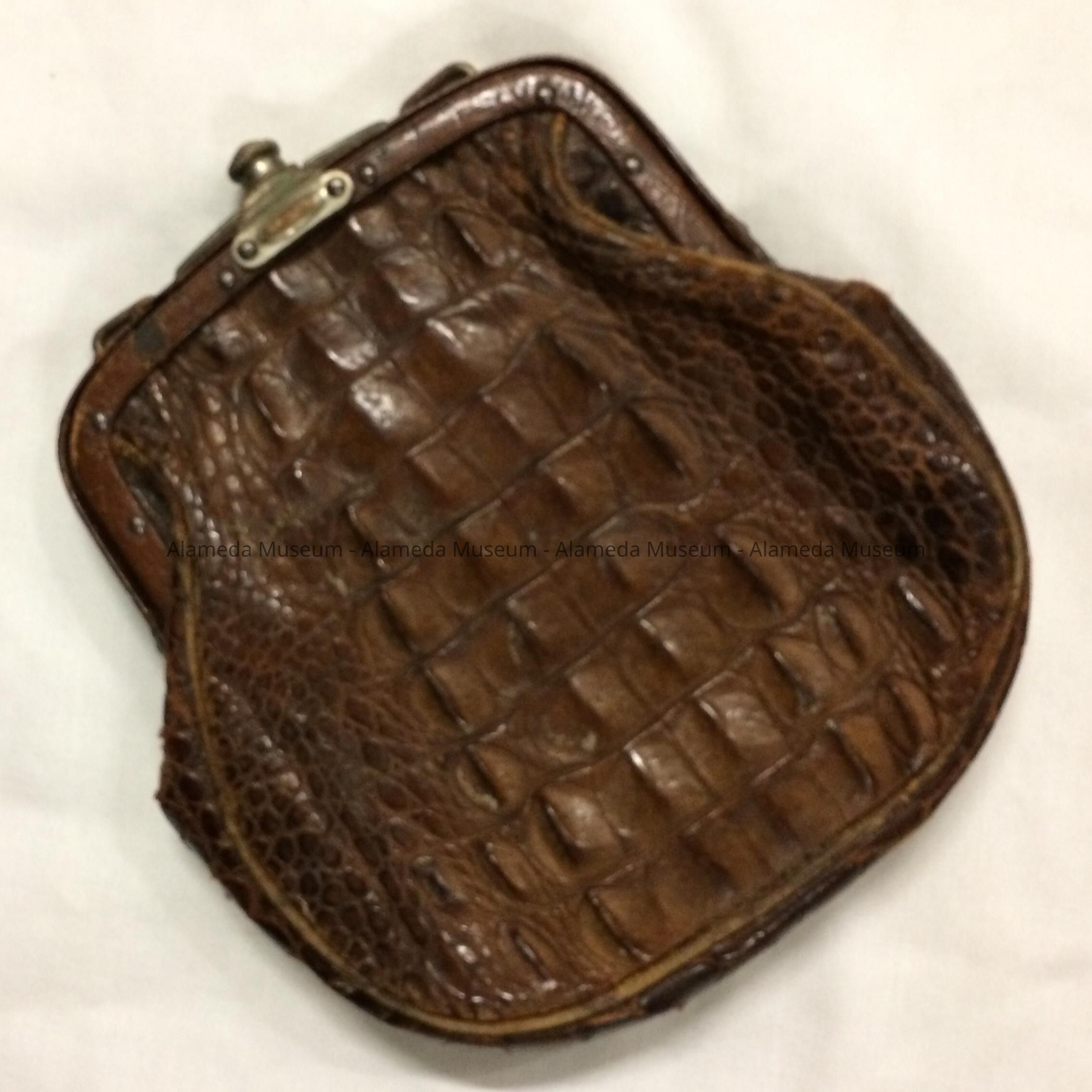 Alligator purse that originally belonged to Lena, wife of Conrad Roth, contractor & builder of Alameda, Calif.