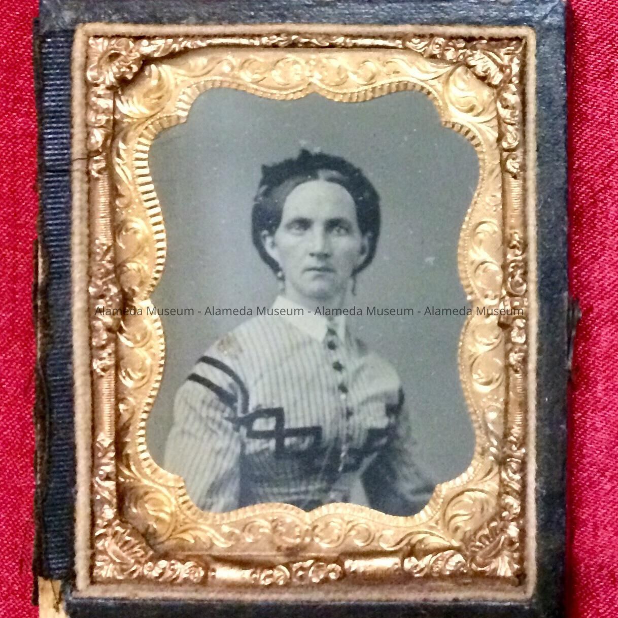 Ambrotype photographic portrait of Katherine Paulson, wife of Thomas A. Thomsen, master mariner, and great grandmother of the donor. The Thomsen's resided at 2114 Encinal Avenue, in a cottage-residence they had erected in 1876. Katherine & Thomas A. Thomsen were the parents of Agnes Louise (1863-1950), wife of Charles F. Fischer, stepson of Denis Straub, pioneer carpenter-builder, Alameda.