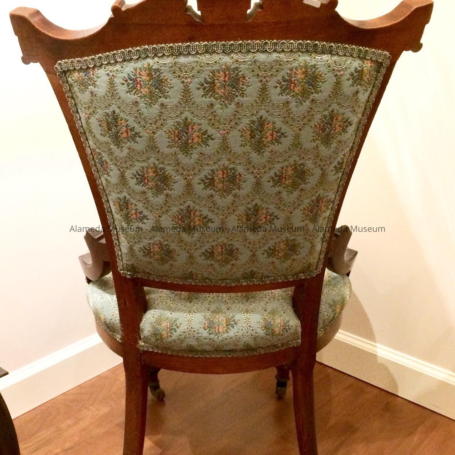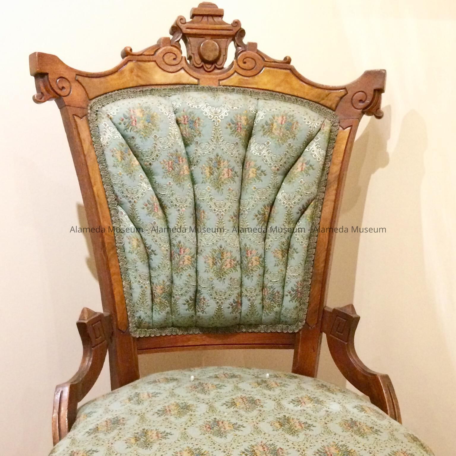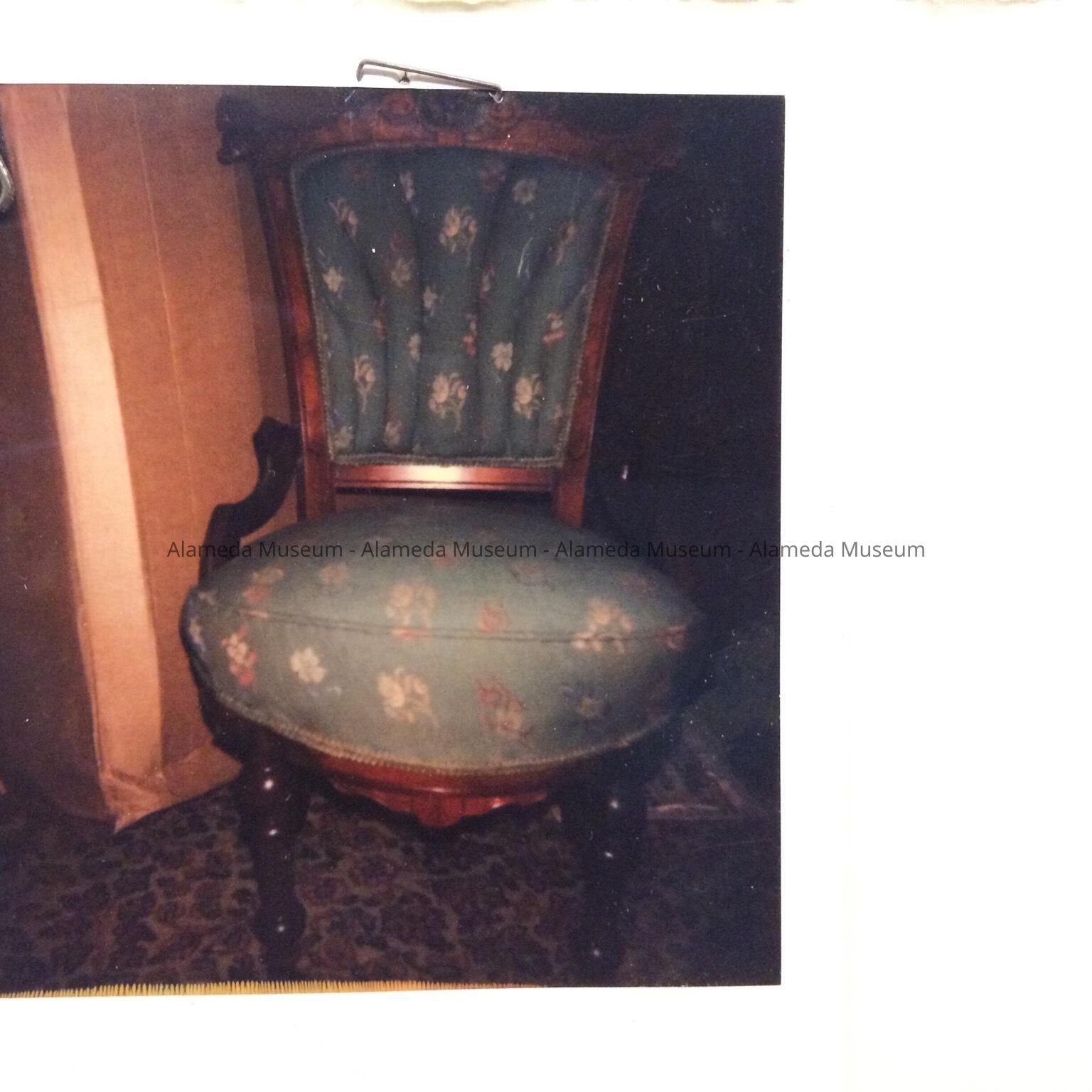 History of Object: Reception chair from the matching parlor set of Caroline Dwinelle (widow of Wm. W. Chipman), 1270 Weber Street, Alameda.