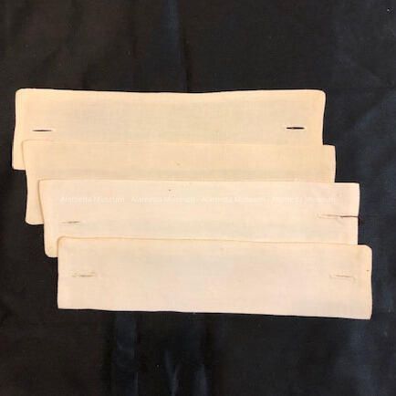 DETACHABLE WHITE-COLORED COTTON, OR LINEN, CUFFS, WITH BUTTON HOLES AT BOTH ENDS (POSSIBLE SECURED BY STUDS).