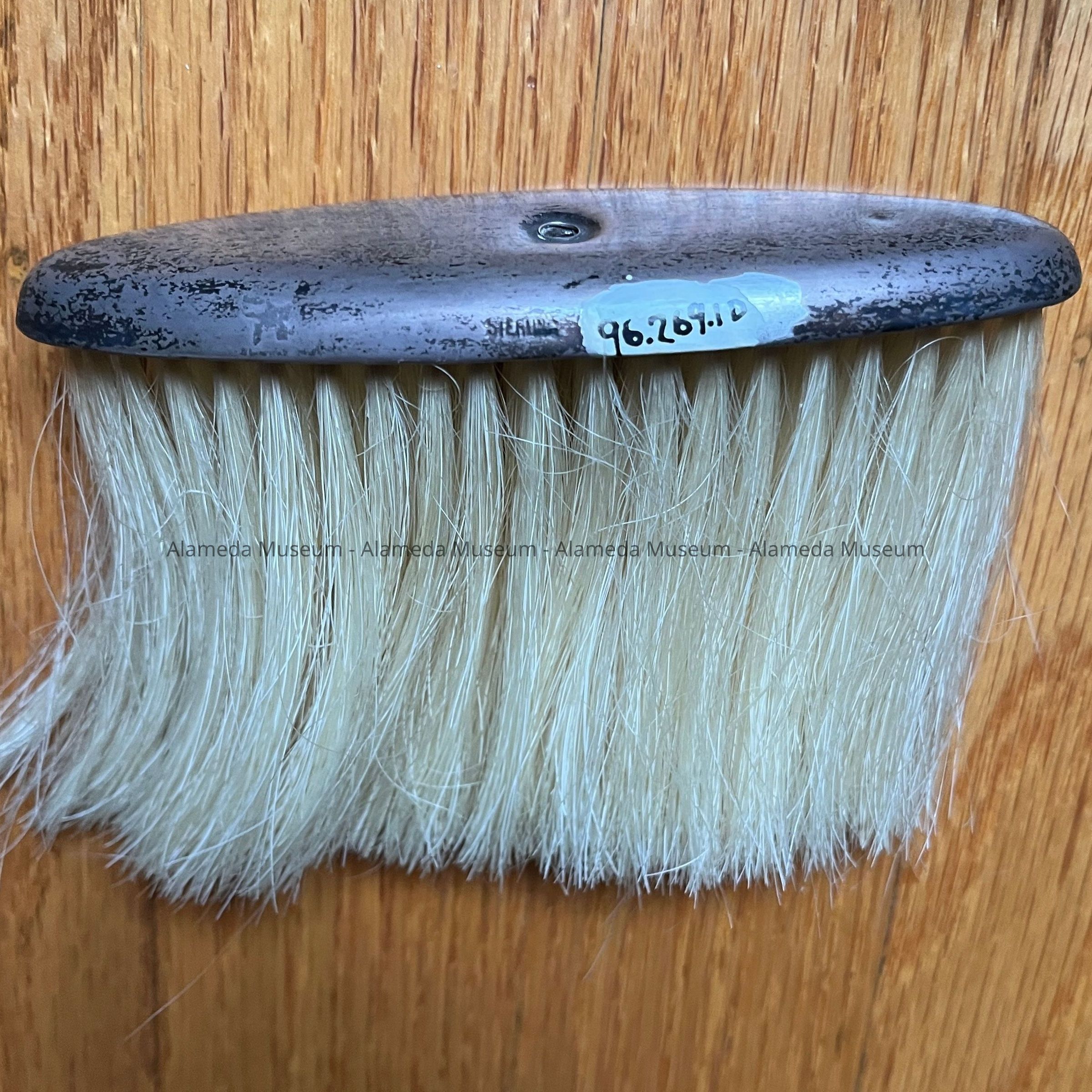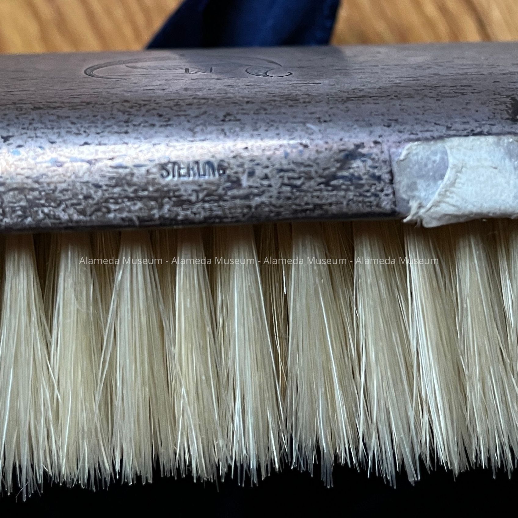 D. OVAL-SHAPED STERLING SILVER HAT BRUSH, WITH NATURAL BRISTLES; HANDLE IS MISSING: L 4-1/2"