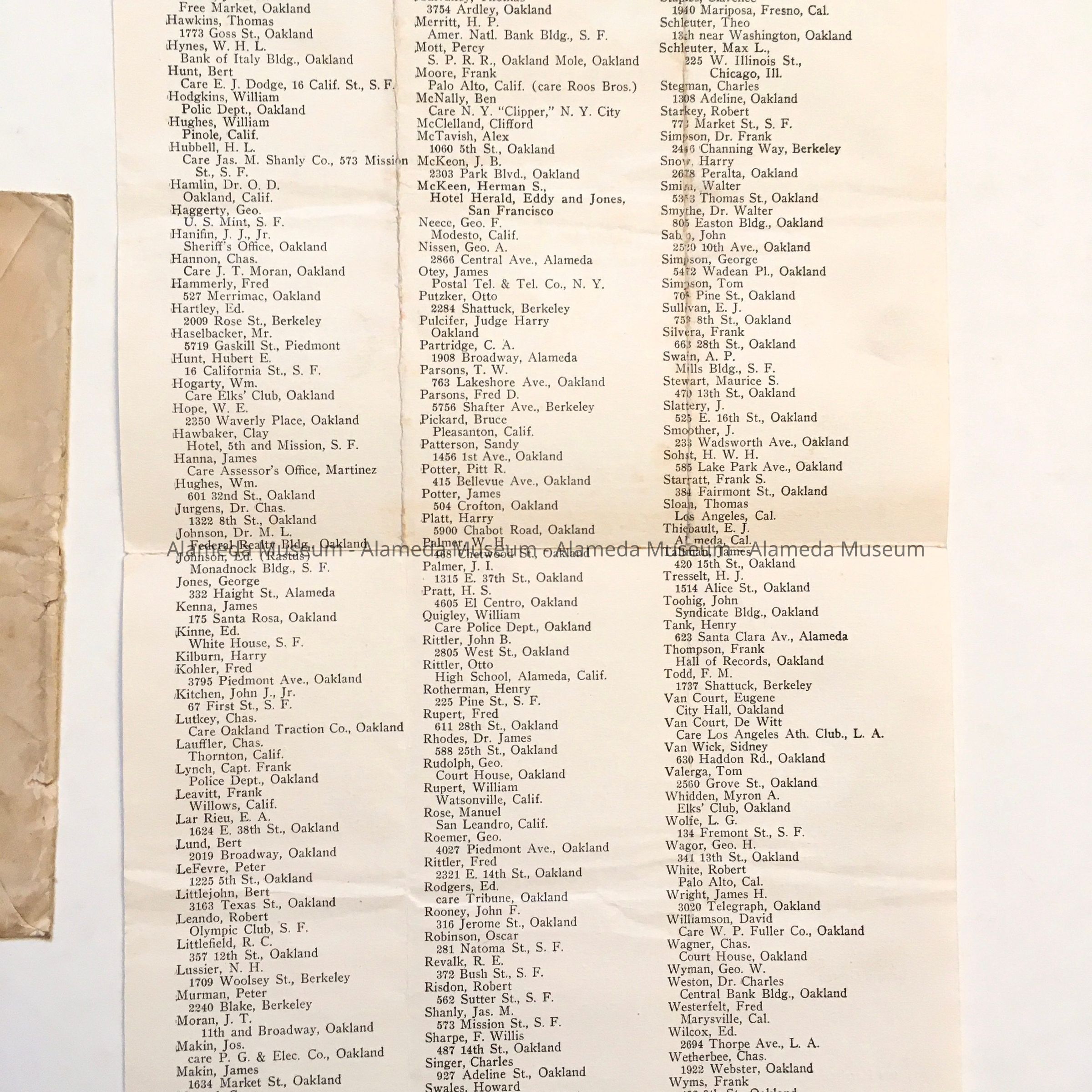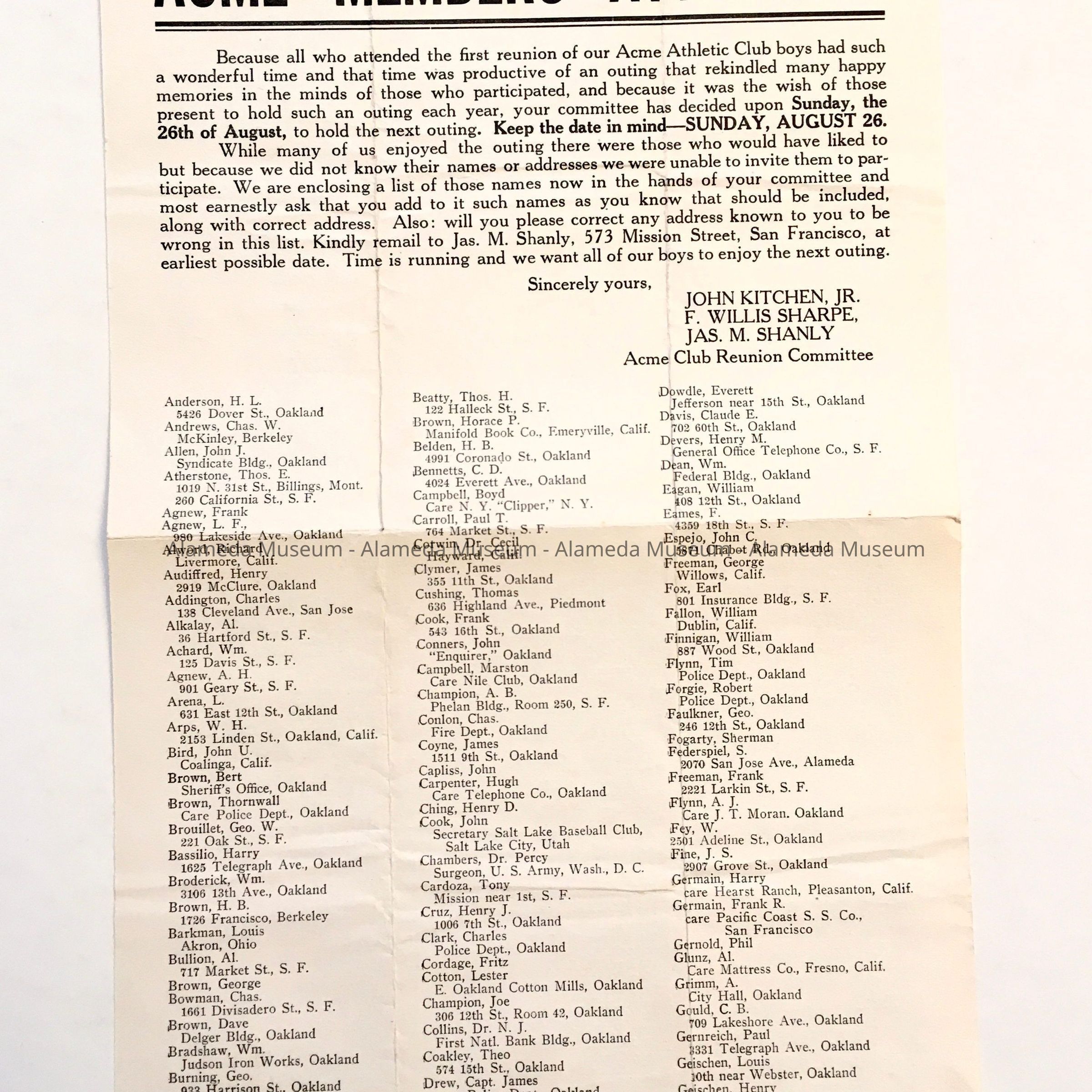 Announcement meeting ACME Athletic Club of San Francisco, and envelope, 1923Entry/Object ID