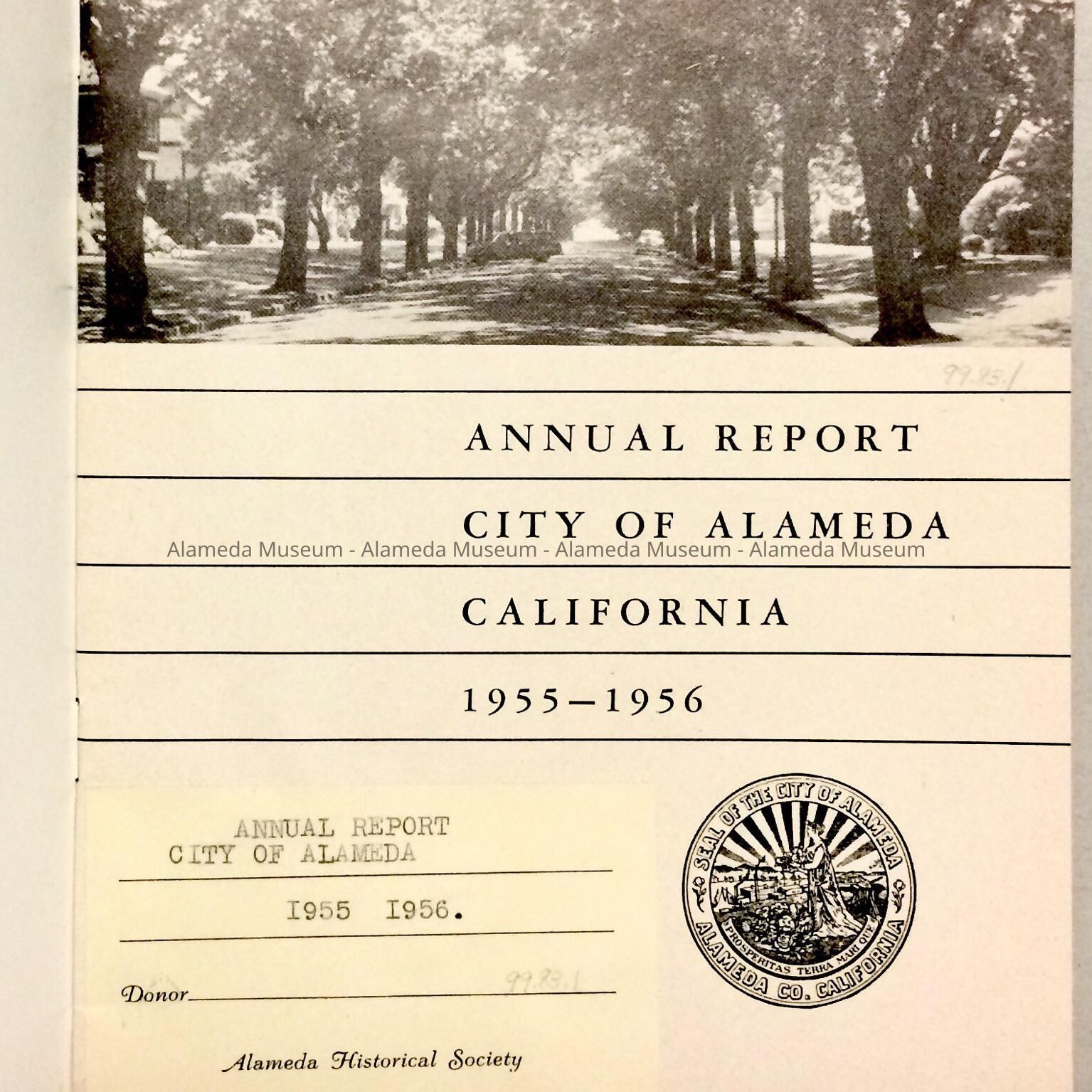 Annual Report, City of Alameda for 1955–56. The report contains information on the various City Departments and is illustrated. Object given to the Alameda Historical Museum, numbered 40A, prior to 1971 and never catalogued.