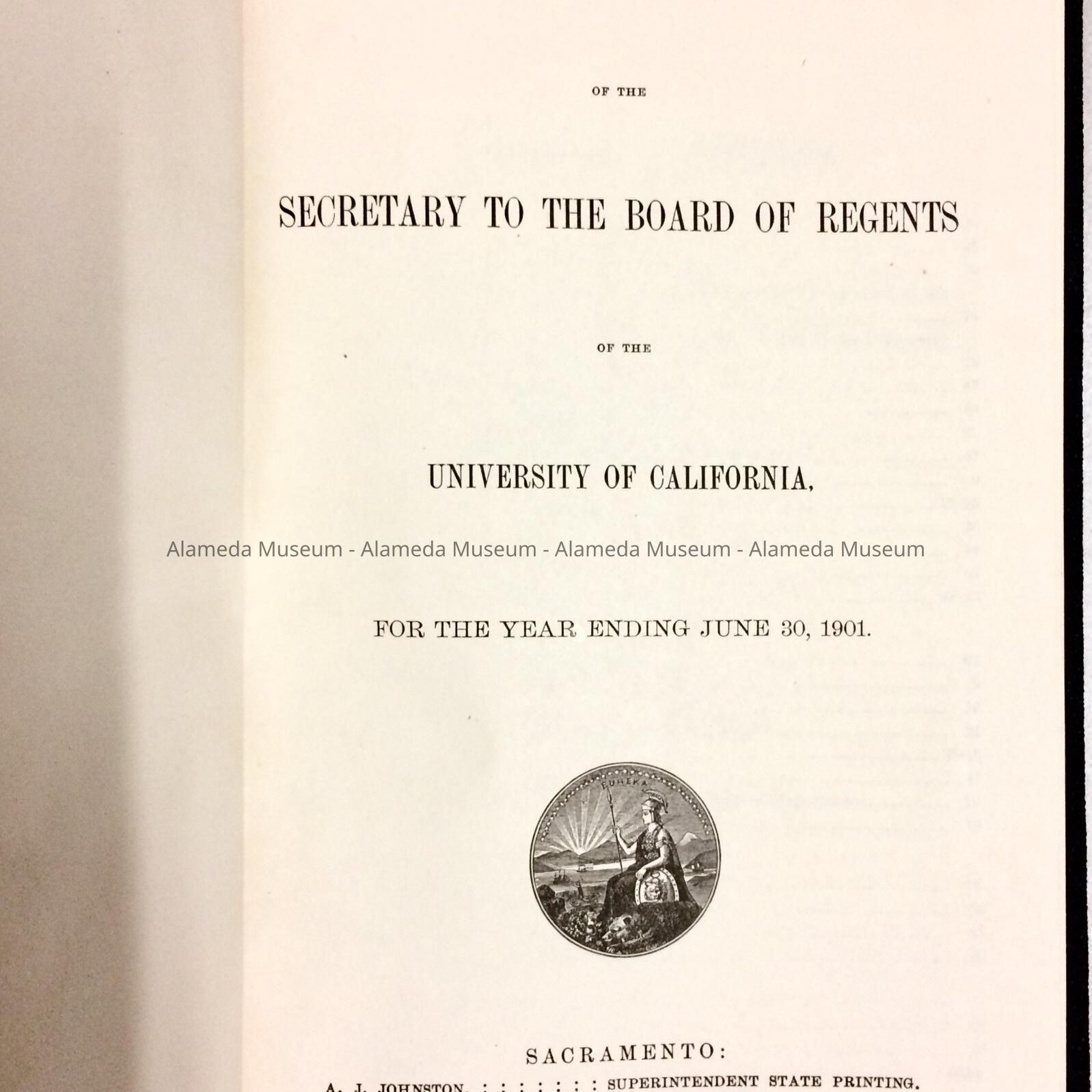 A BOUND COPY OF THE ANNUAL REPORT OF THE SECRETARY TO THE BOARD OF REGENTS OF THE UNIVERSITY OF CALIFORNIA, FOR THE YEAR ENDING JUNE 30, 1901.