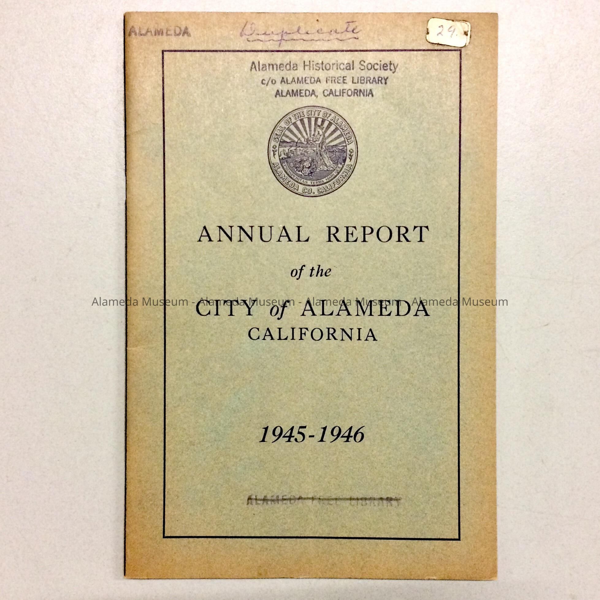 'Annual Report of the city of Alameda', 1945-1946Entry/Object ID