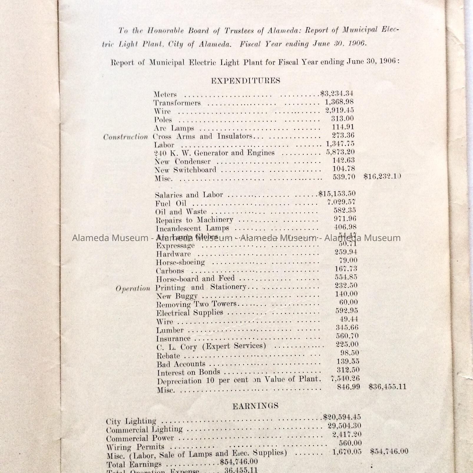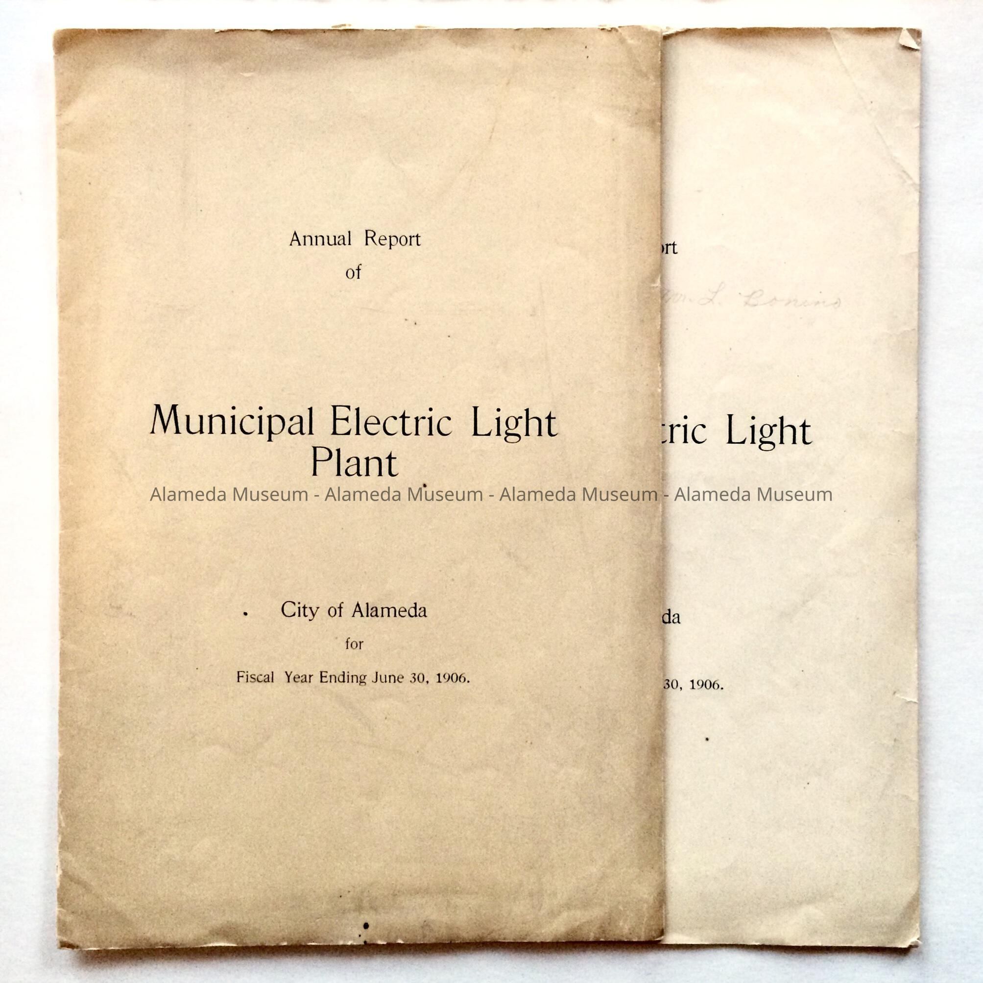 History: Annual Report of the Municipal Electric Light Plant, City of Alameda, for the fiscal year ending June 30, 1906.