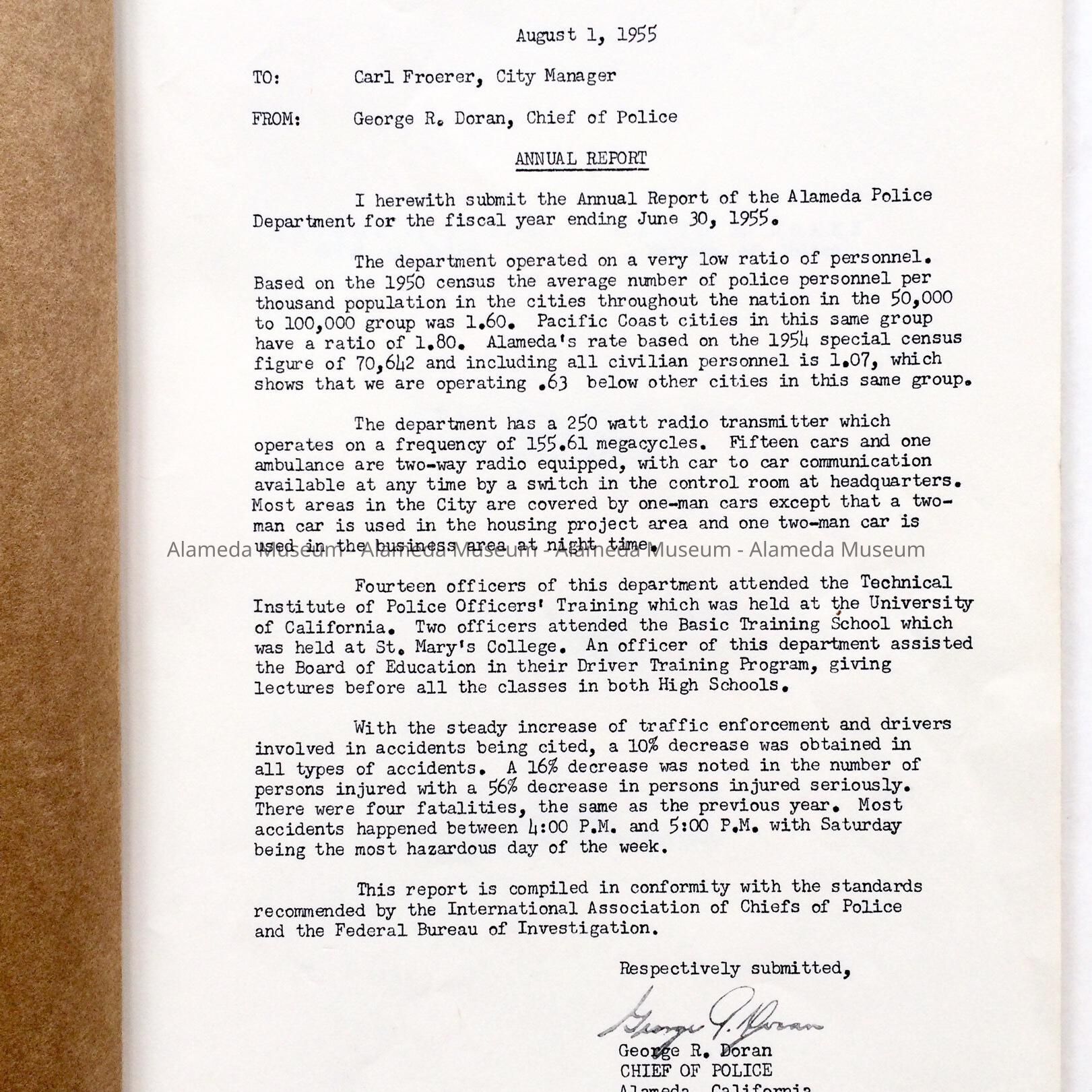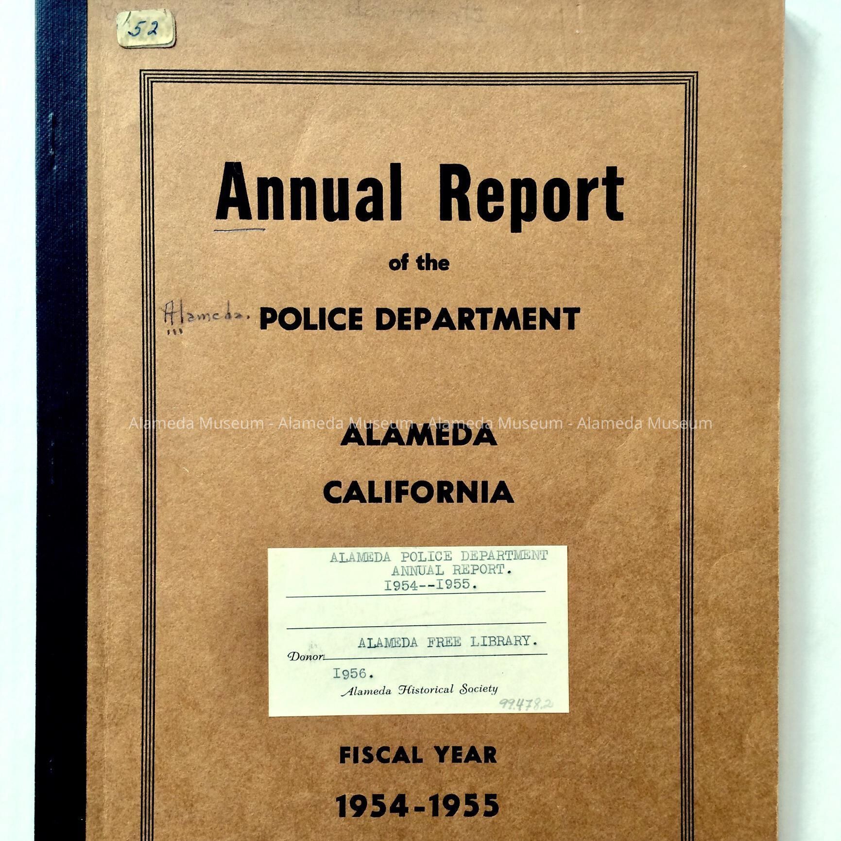 History: Annual Report, Police Department, City of Alameda, for the fiscal year 1954-55 with statistics concerning crime, etc.
