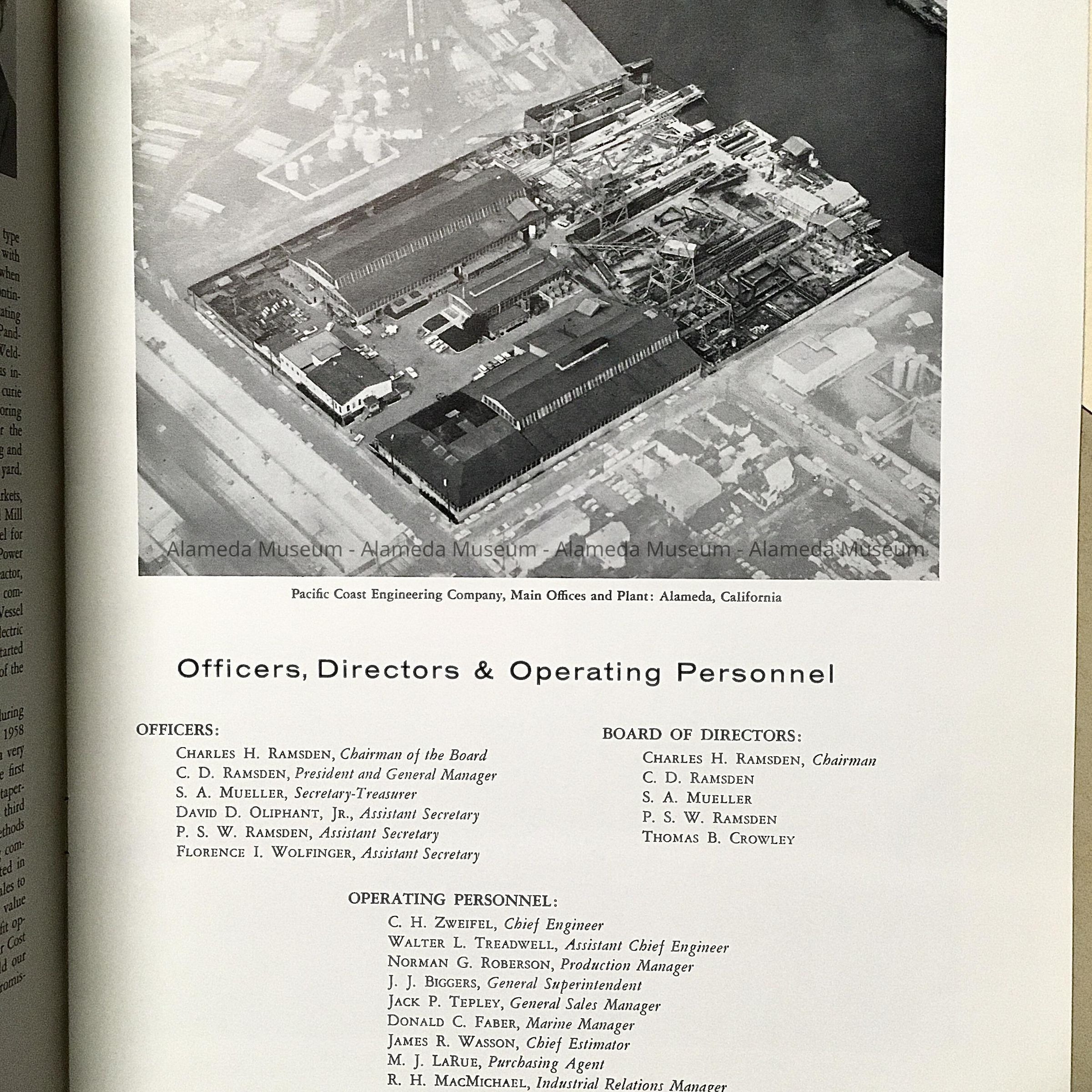 HISTORY OF OBJECTS: ANNUAL REPORTS, ETC. OF THE PACIFIC COAST ENGINEERING COMPANY, KNOWN AS PACECO, LOCATED AT ENCINAL TERMINALS.