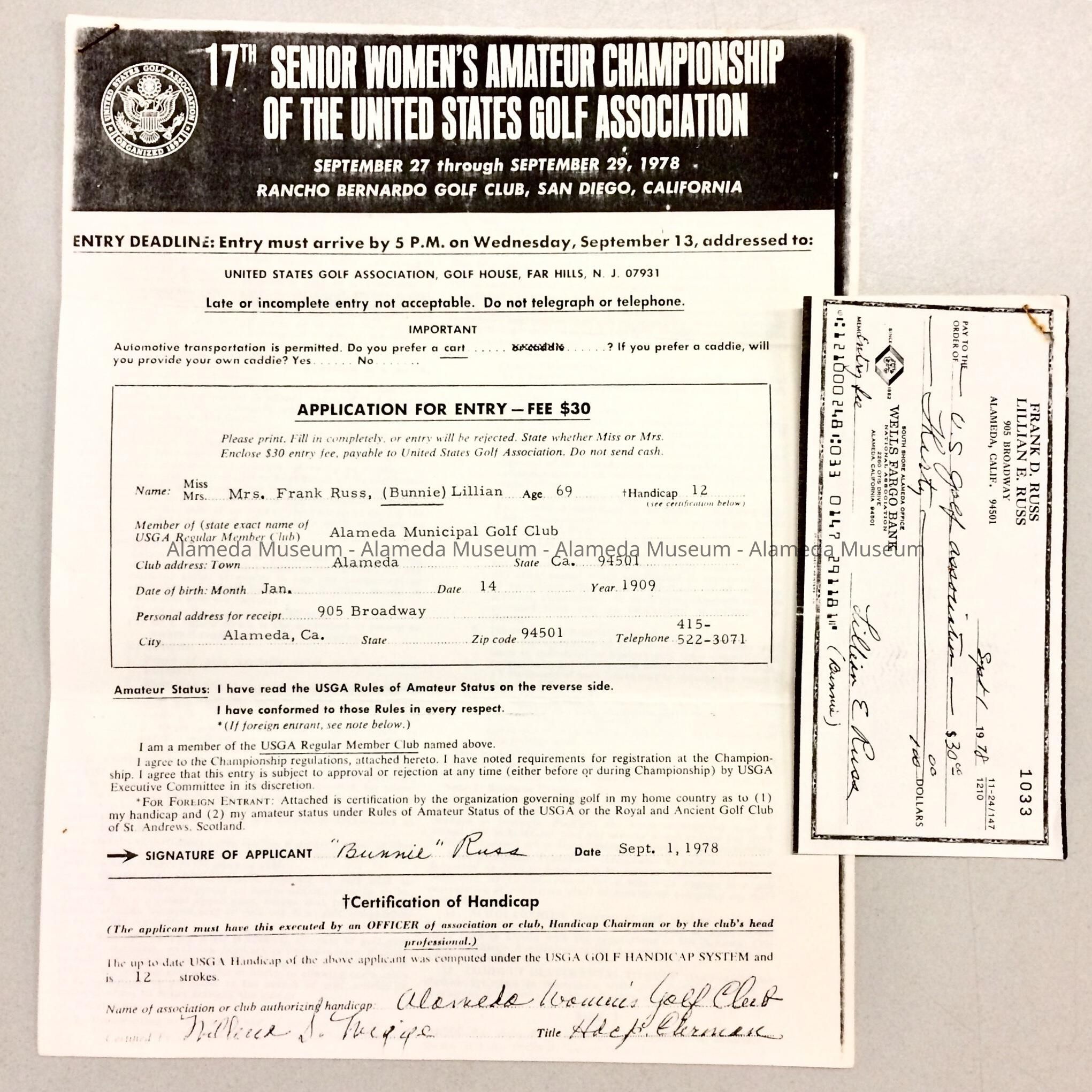 Application of entry into a Golf Championship for Bunny Fergus Russ, 1978Entry/Object ID