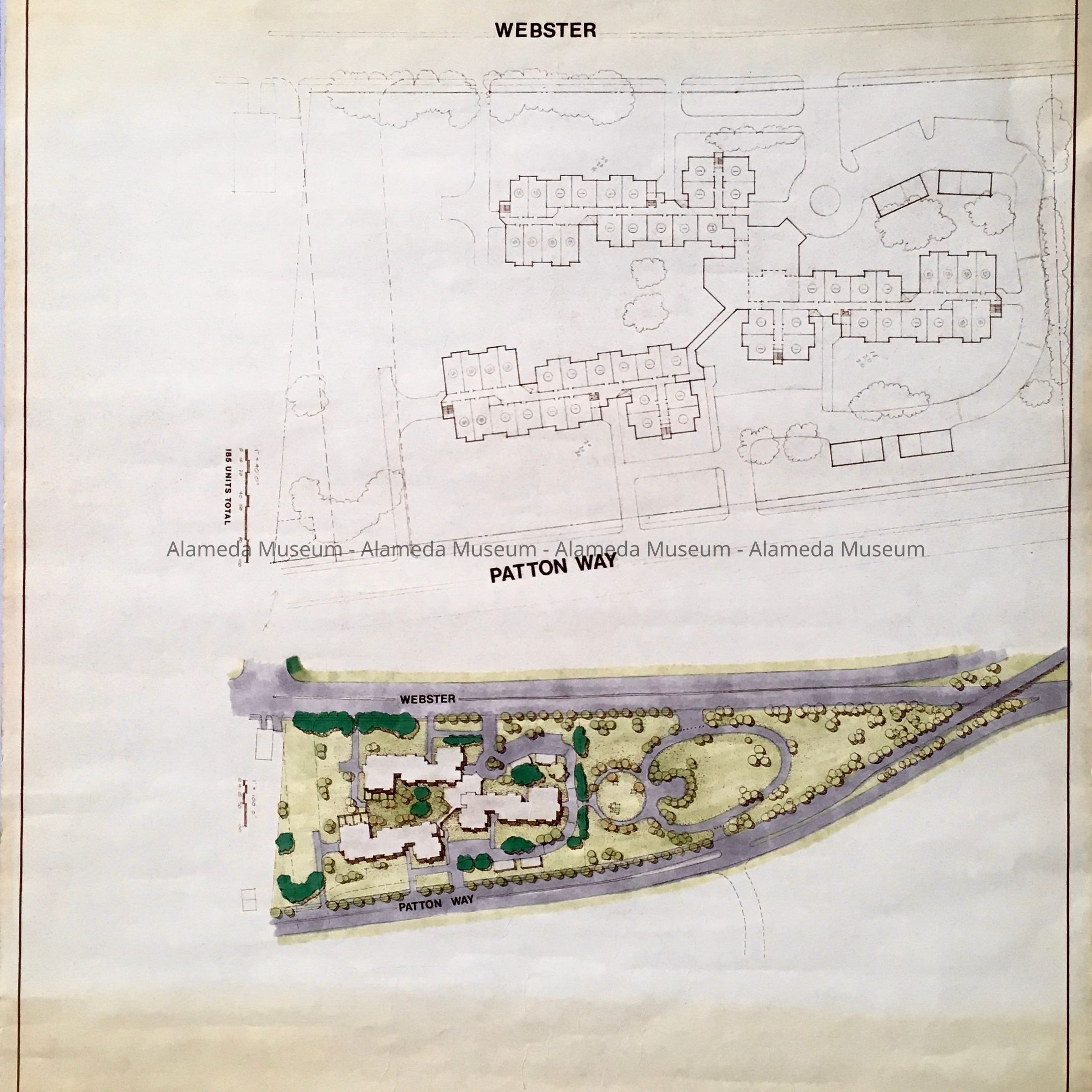 HISTORY OF OBJECT: AN ARCHITECT'S DRAWING DEPICTING A FOOTPRINT OF A BUILDING AND LANDSCAPING FOR THE ALAMEDA SENIOR CITIZEN HOUSING ON POPE STREET (BETWEEN WEBSTER STREET AND PATTON WAY), BY THE HOUSING AUTHORITY OF THE CITY OF ALAMEDA, LYNN WU ASSOCIATES, ARCHITECTS AND PLANNERS, DATED NOVEMBER 21, 1980.