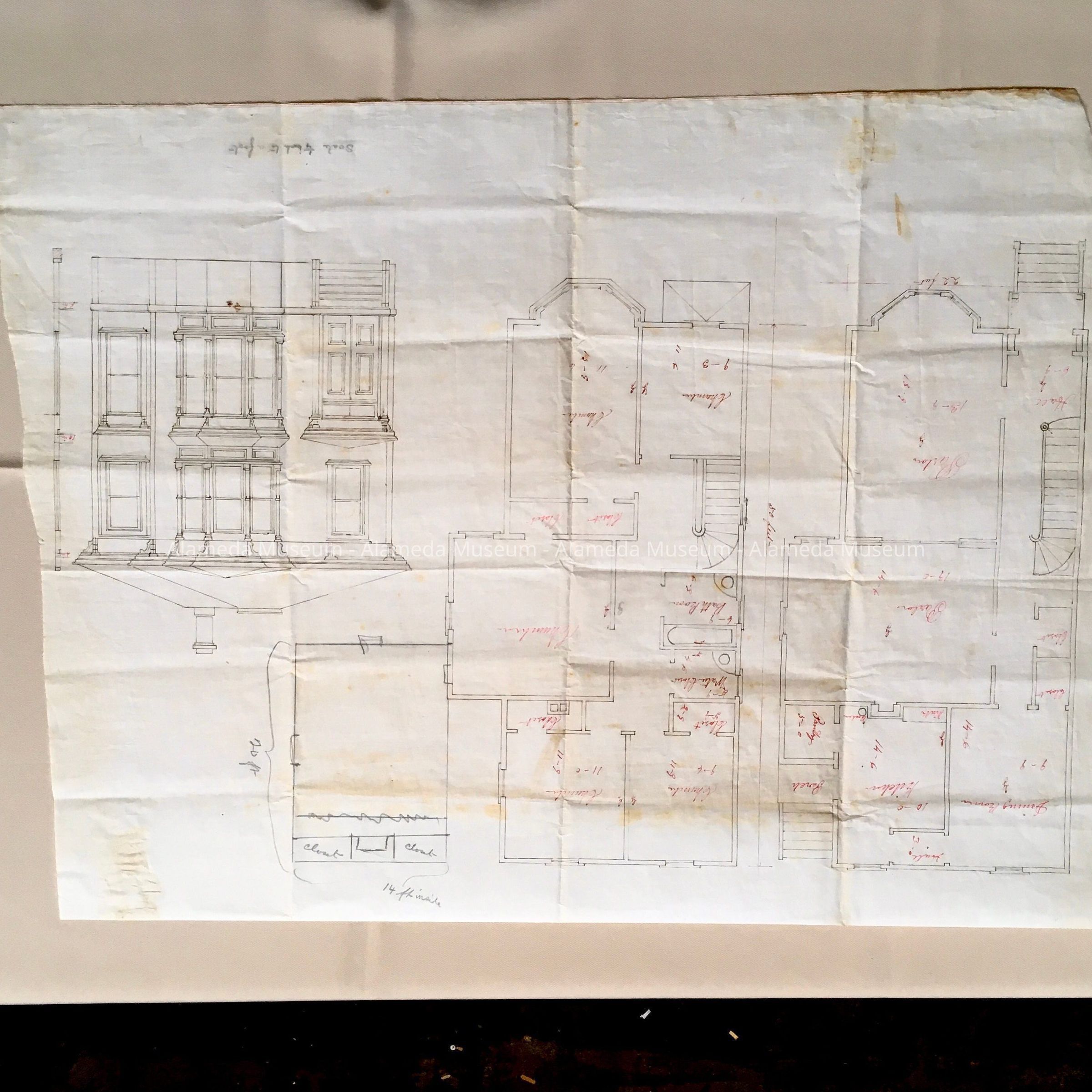HISTORY OF OBJECT: ARCHITECTS RENDERING OF FLOOR PLAN, IST AND 2ND STORY, AND EXTERIOR FACADE OF 1729 SAN ANTONIO, AN ITALIANATE RESIDENCE ERECTED FOR HENRY DEAS, IN 1879, J. W. DAWSON, ARCHITECT & CONTRACTOR, OCCUPIED BY THE DEAS FAMILY FROM 1879 TO 1973.