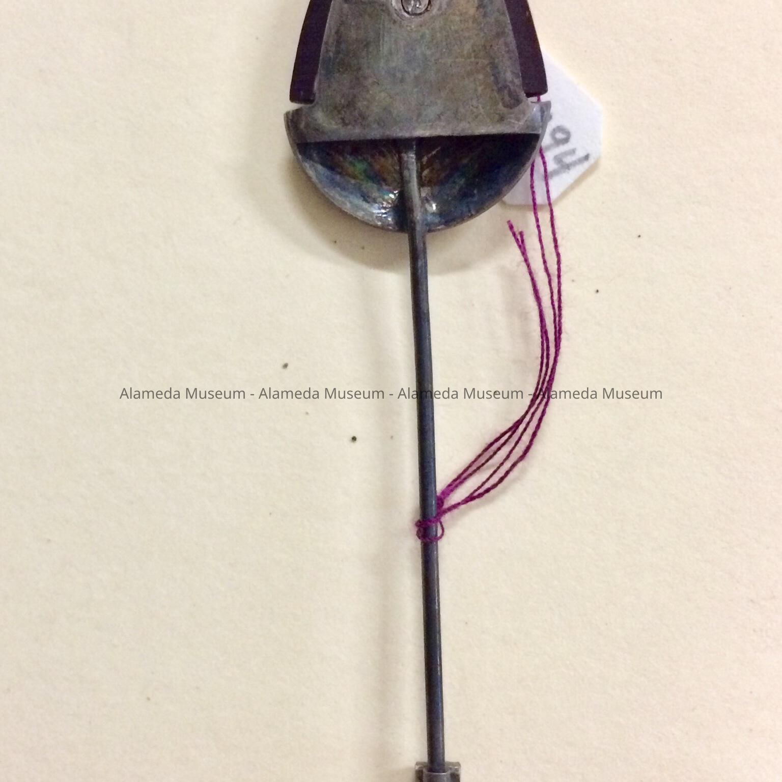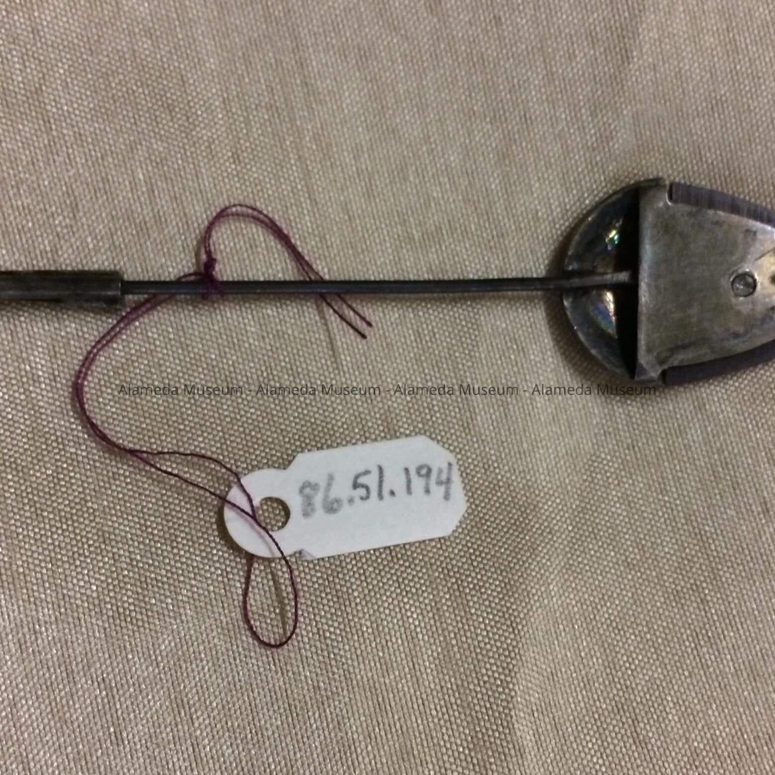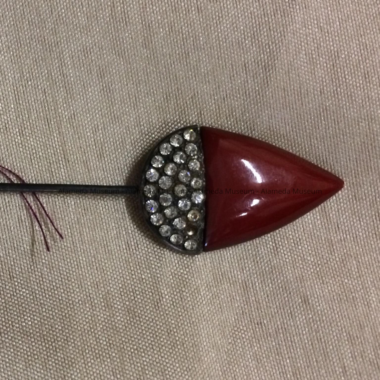 Art deco hat pin with red Bakelite acorn head and rhinestones, 1930Entry/Object ID