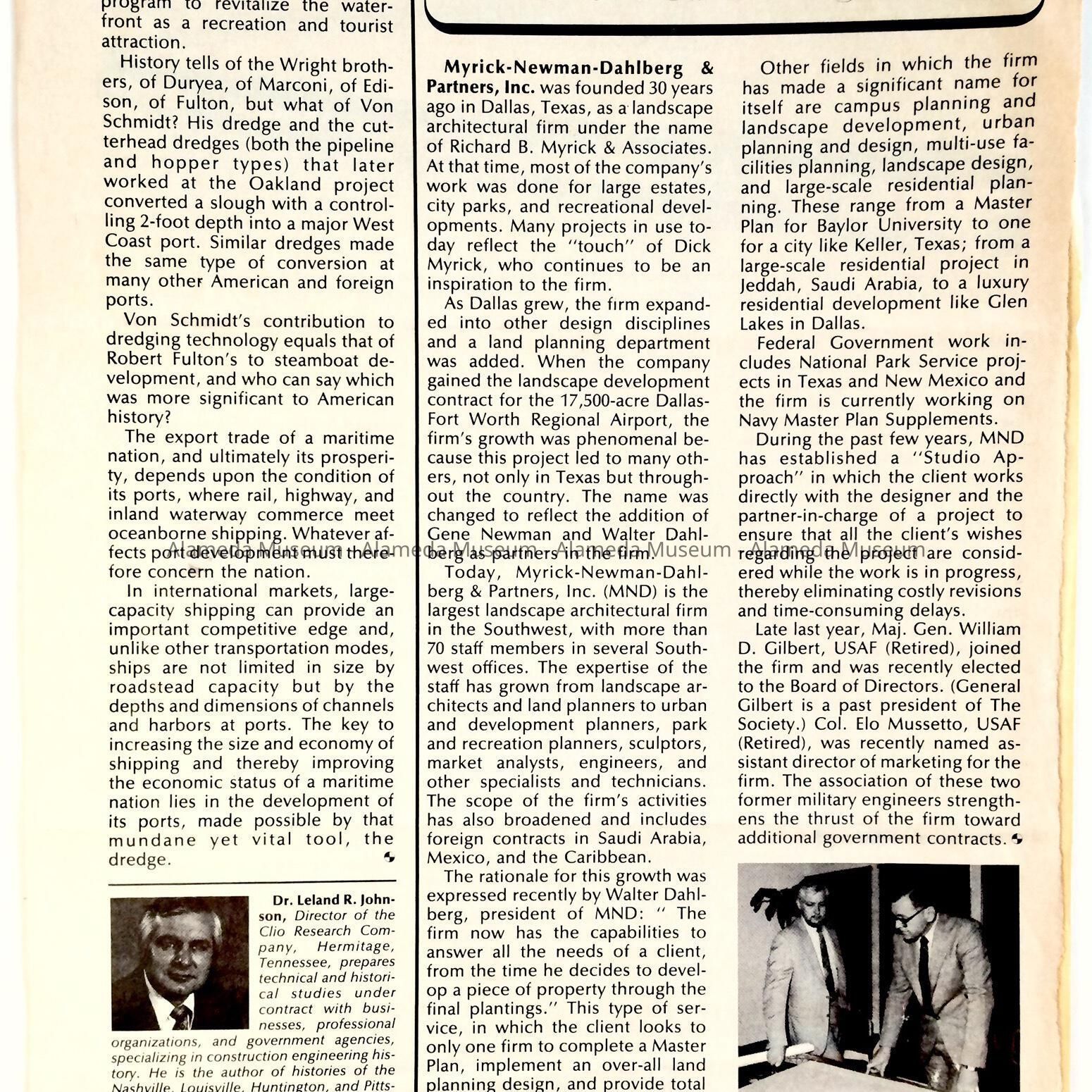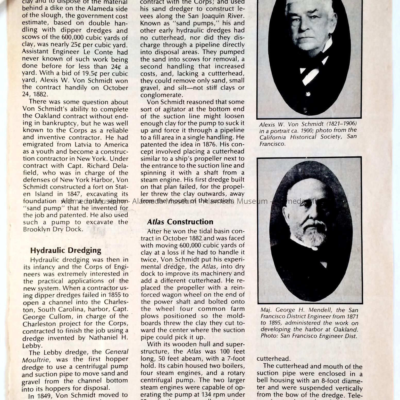 History: Article which appeared in the Military Engineer of March 4, 1984, concerning the Von Schmidt Dredger used in the excavation of the tidal canal separating Alameda from Oakland.