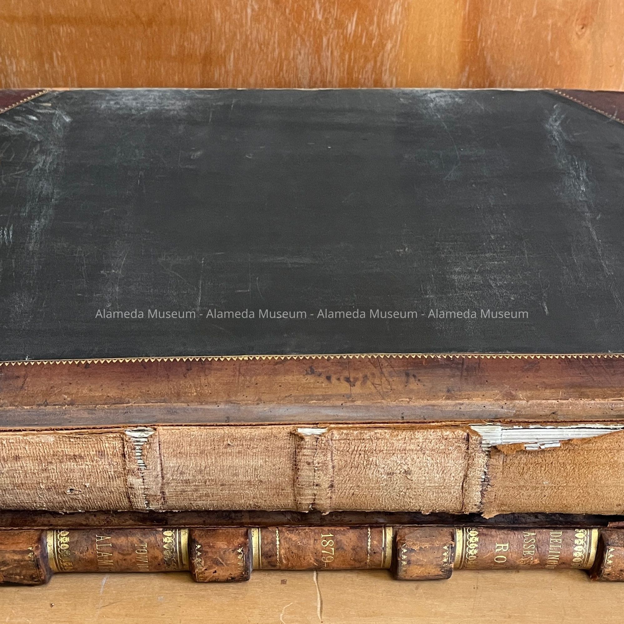 Description: Bound volume in red and brown colored leather, accentuated with gold. The spine of each record states: "Assessment Book", the year, and "Town (later "City") of Alameda". Each year's record comes with a supplemental volume labeled "Delinquent Assessor's Roll". All entries are hand-written on a printed form.