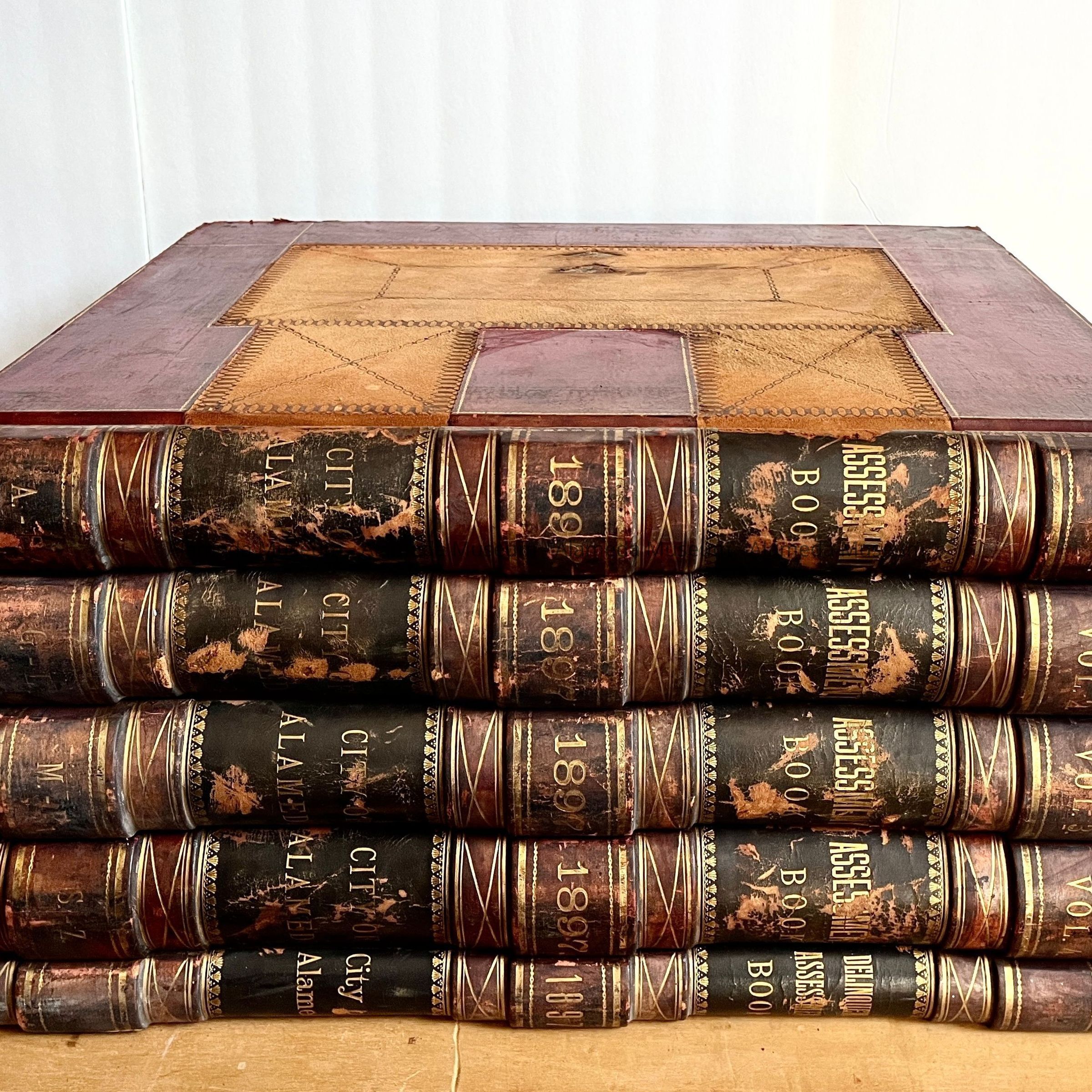 Description: Bound volume in red and brown colored leather, accentuated with gold.The spine of each record states: "Assessment Book", the year, and "City of Alameda". Each year's record comes with a supplemental volume labeled "Delinquent Assessor's Roll". All entries are hand-written on a printed form.