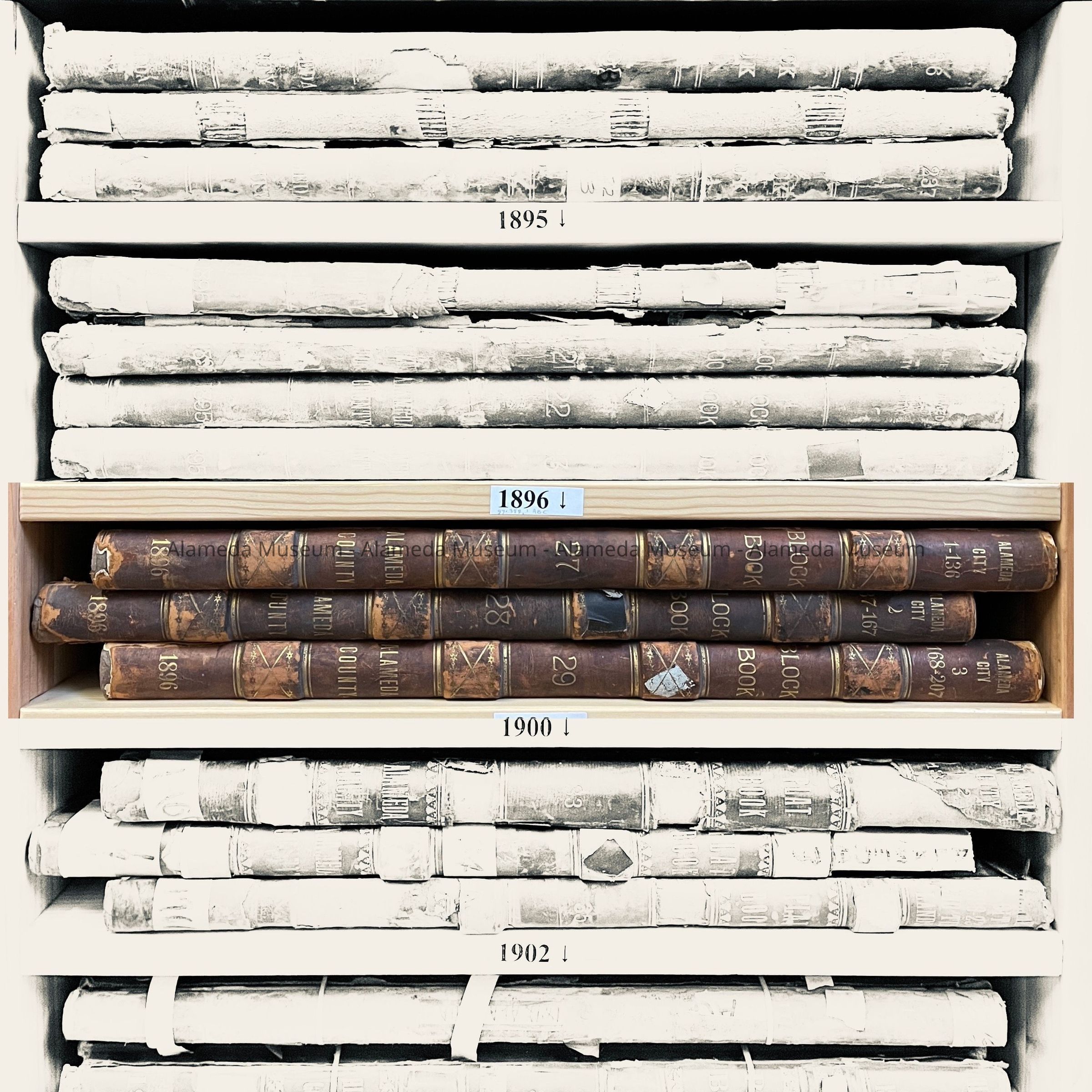 ASSESSOR'S BLOCK BOOKS CONTAINING OWNERSHIP, LOT SIZES, AND INDICATING IMPROVEMENTS, AS APPROPRIATE. BLOCK BOOKS FOR 1896 WOULD, IN REALITY, INDICATE OWNERSHIP AND IMPROVEMENTS FOR 1895, SINCE EACH BLOCK BACK PERTAINS TO THE PREVIOUS YEAR. NOTE: BLOCK #4 IS MISSING; THEREFORE, THIS IS NOT A COMPLETE SET!