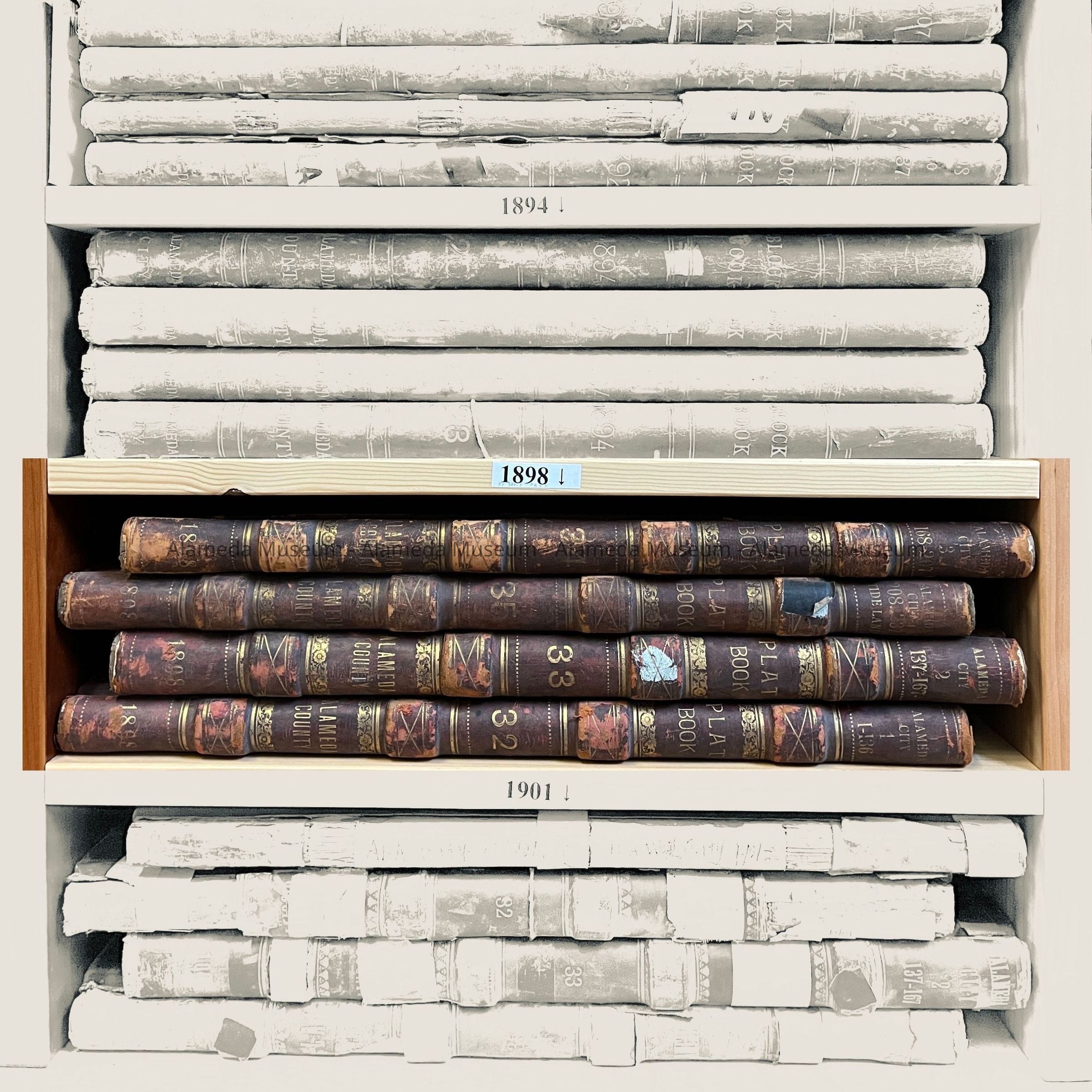 INCISED GOLD LETTERING ON SPINES, "ALAMEDA CITY PLATE BOOK, VOLUME # , ALAMEDA COUNTY, 1898."