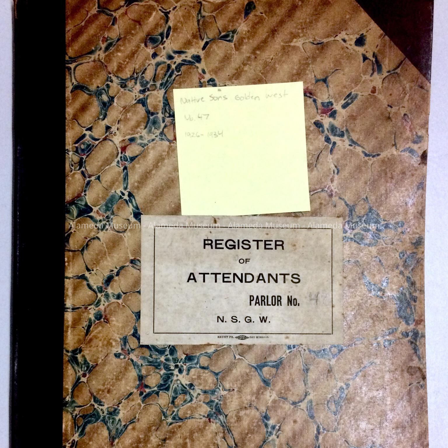 HISTORY OF OBJECT: LEDGER CONTAINING REGISTER OF ATTENDANTS FOR THE NATIVE SONS OF THE GOLDEN WEST, PARLOR NO. 47, ALAMEDA.