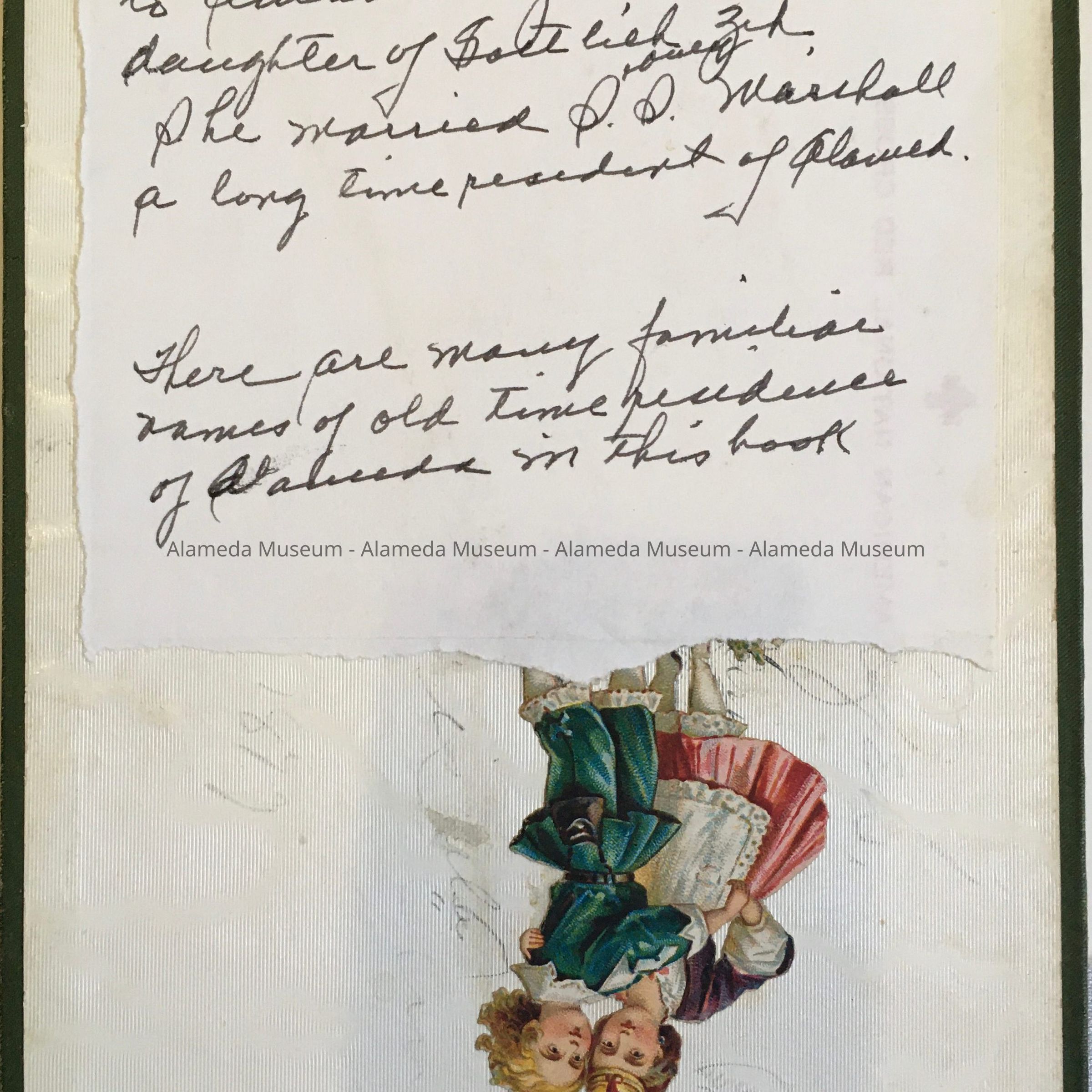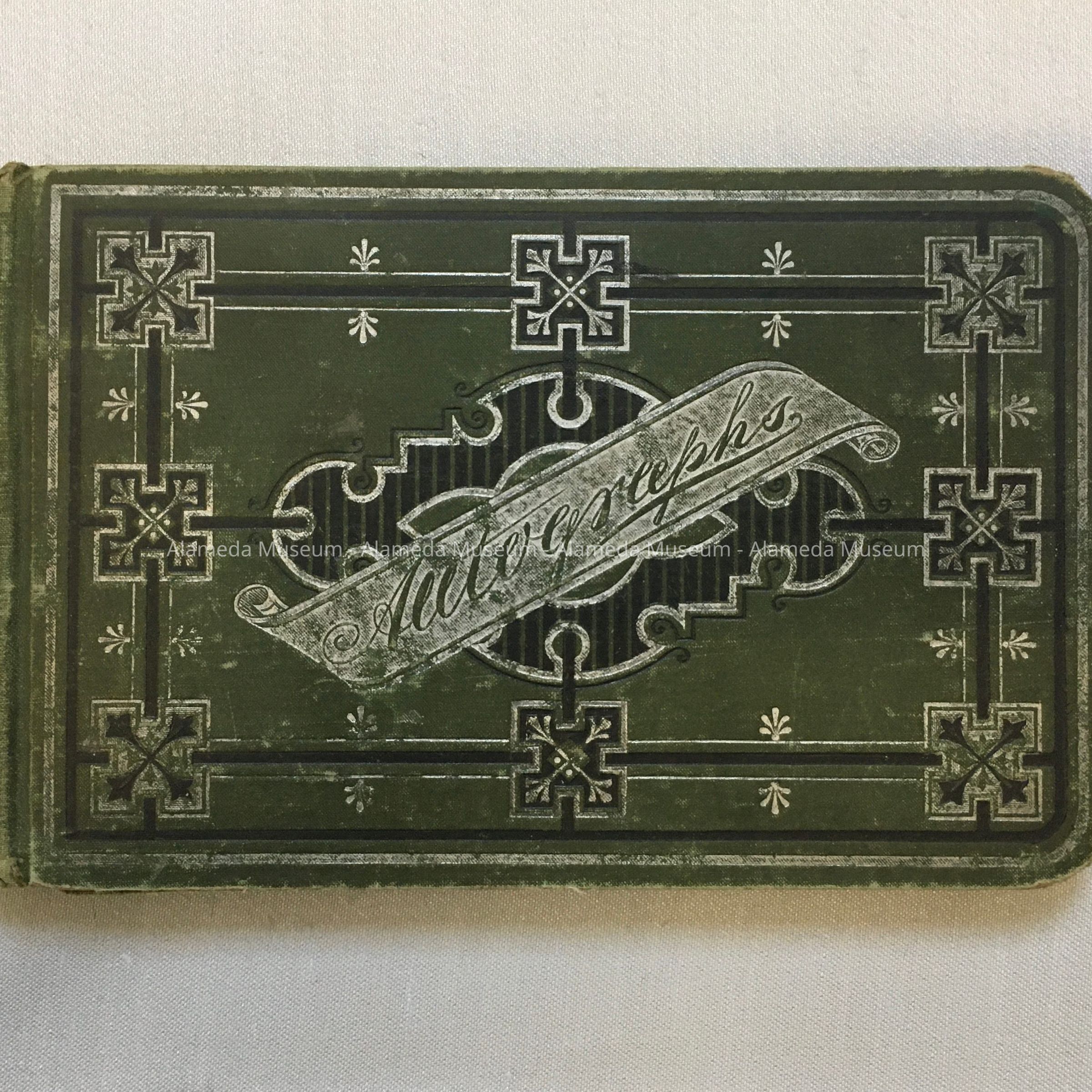 AUTOGRAPH ALBUM THAT BELONGED TO AMANDA ZEH, THE ELDEST DAUGHTER OF GOTTLIEB ZEH. SHE MARRIED MR S S MARSHALL, LONG-TIME RESIDENT OF ALAMEDA, CA. THE ZEH FAMILY LIVED IN THE 2200 BLOCK OF CENTRAL AVENUE, PRESENT SITE OF THE HISTORIC ALAMEDA HIGH SCHOOL. THE ALBUM IS AUTOGRAPHED BY MANY PIONEER RESIDENTS OF THE CITY.