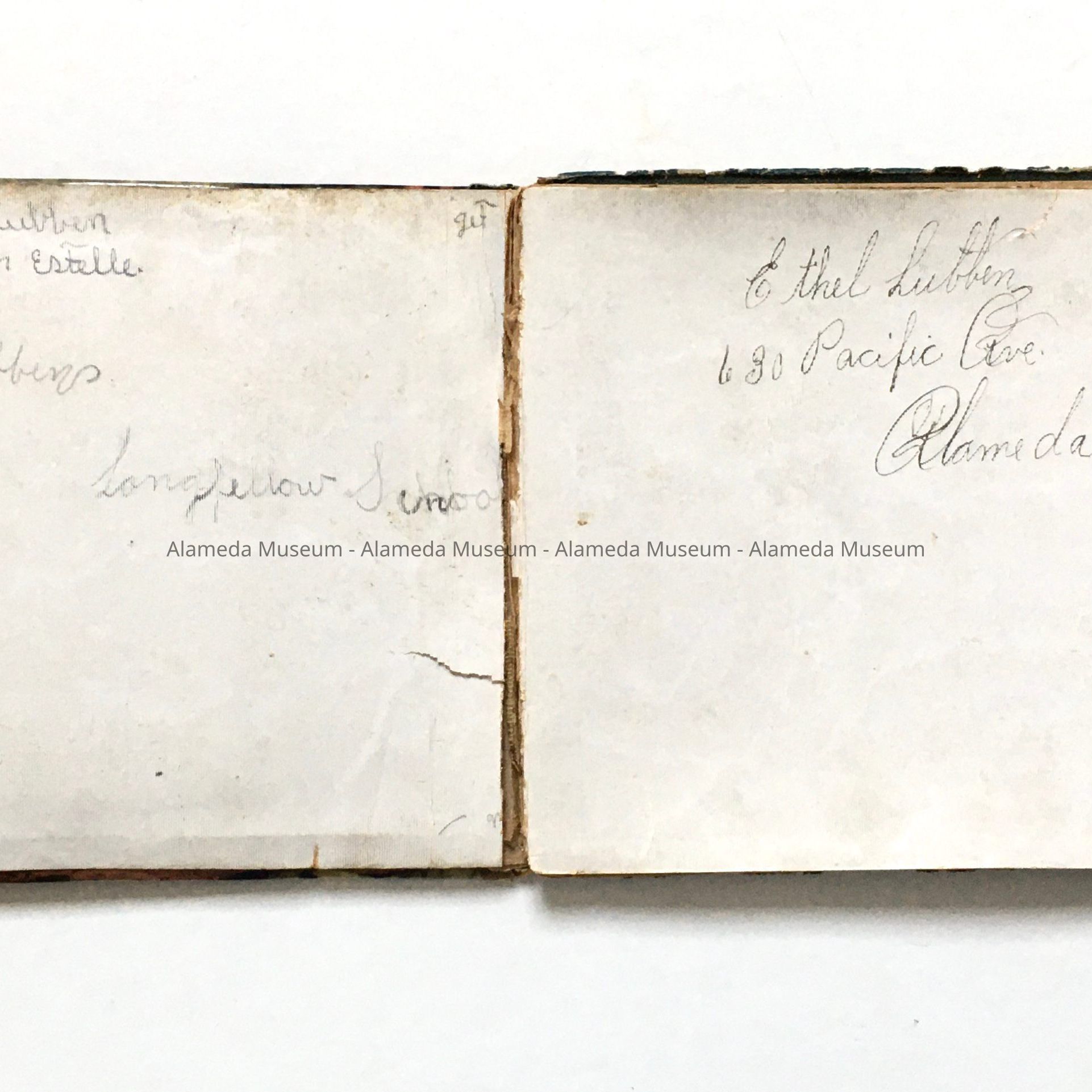 History of Object: Autograph album that belonged to Ethel, daughter of George Lubben. Lubben was a proprietor of a fuel and grain yard on Webster Street, known as "Lubben Brothers." They were old-time residents of the West End. Ethel Lubben attended Longfellow School. Many of the autographs are of her school mates.