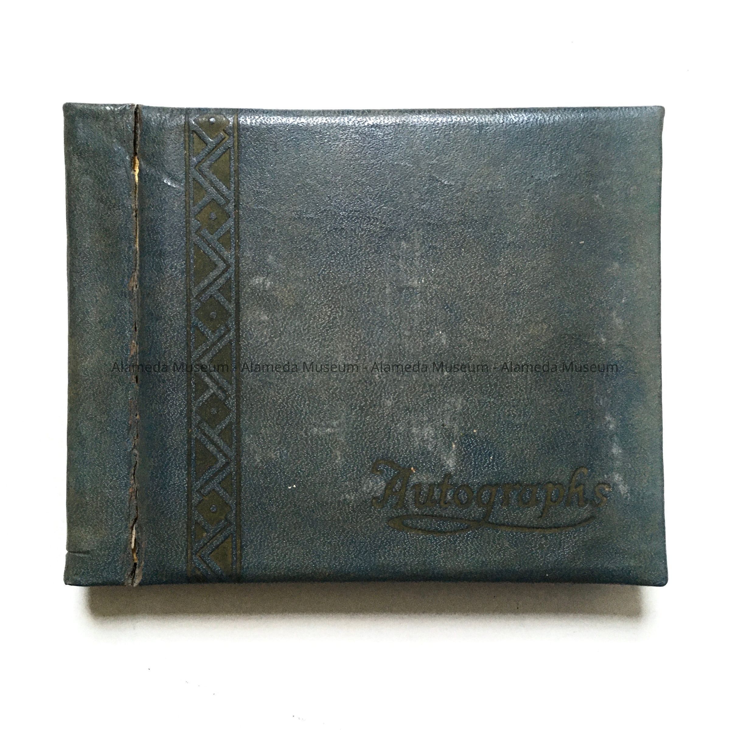 Description: A hardbound album cover in imitation navy blue leather on its cover is “AUTOGRAPHS''.