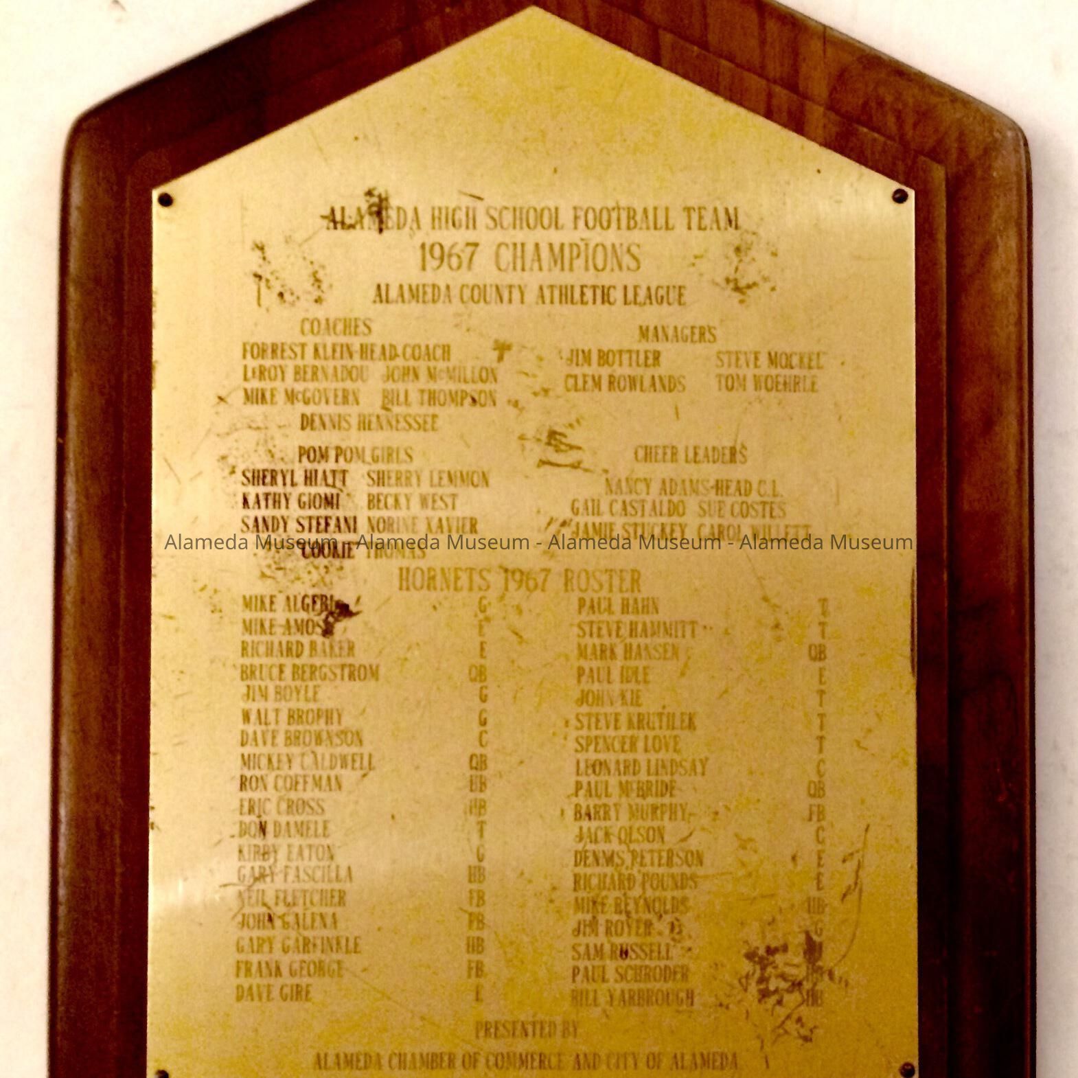 Award plaque for the 1967 Alameda High Football teamEntry/Object ID