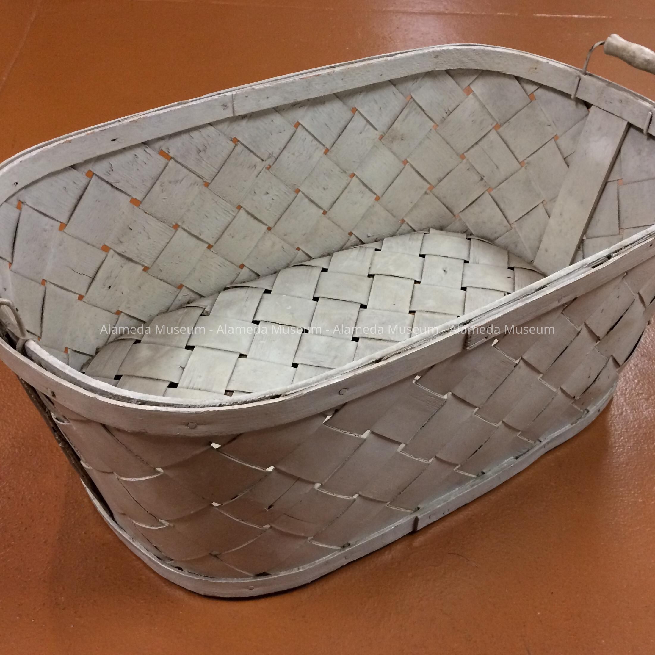 History: Basket used in nursery for newborn babies, Tennant's Maternity Hospital, 1716 Chestnut St., Alameda.