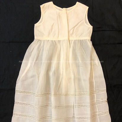 Description: White baby petticoat trimmed with modified ruffle hem & machine lace inserts.