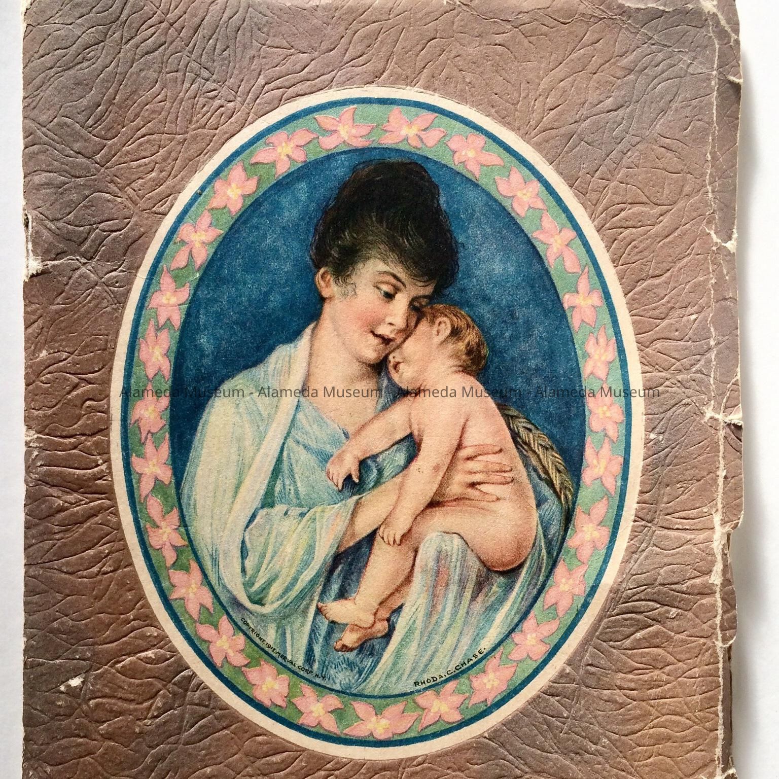 Softbound booklet with lithographic cover. Illustration on cover of mother and child in oval-shaped medallion on a tan-colored background.