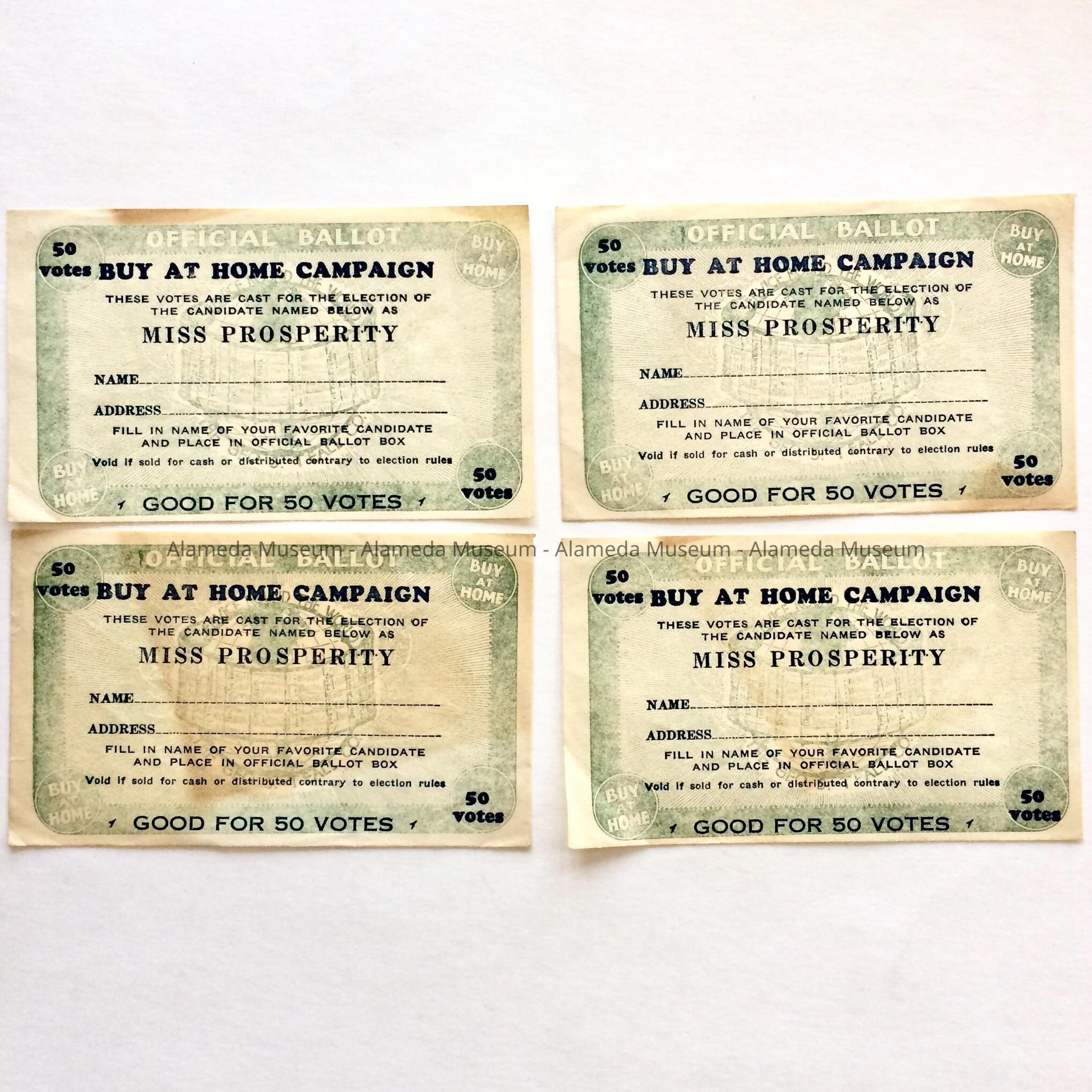 Ballots for Miss Prosperity contest, c. 1930sEntry/Object ID