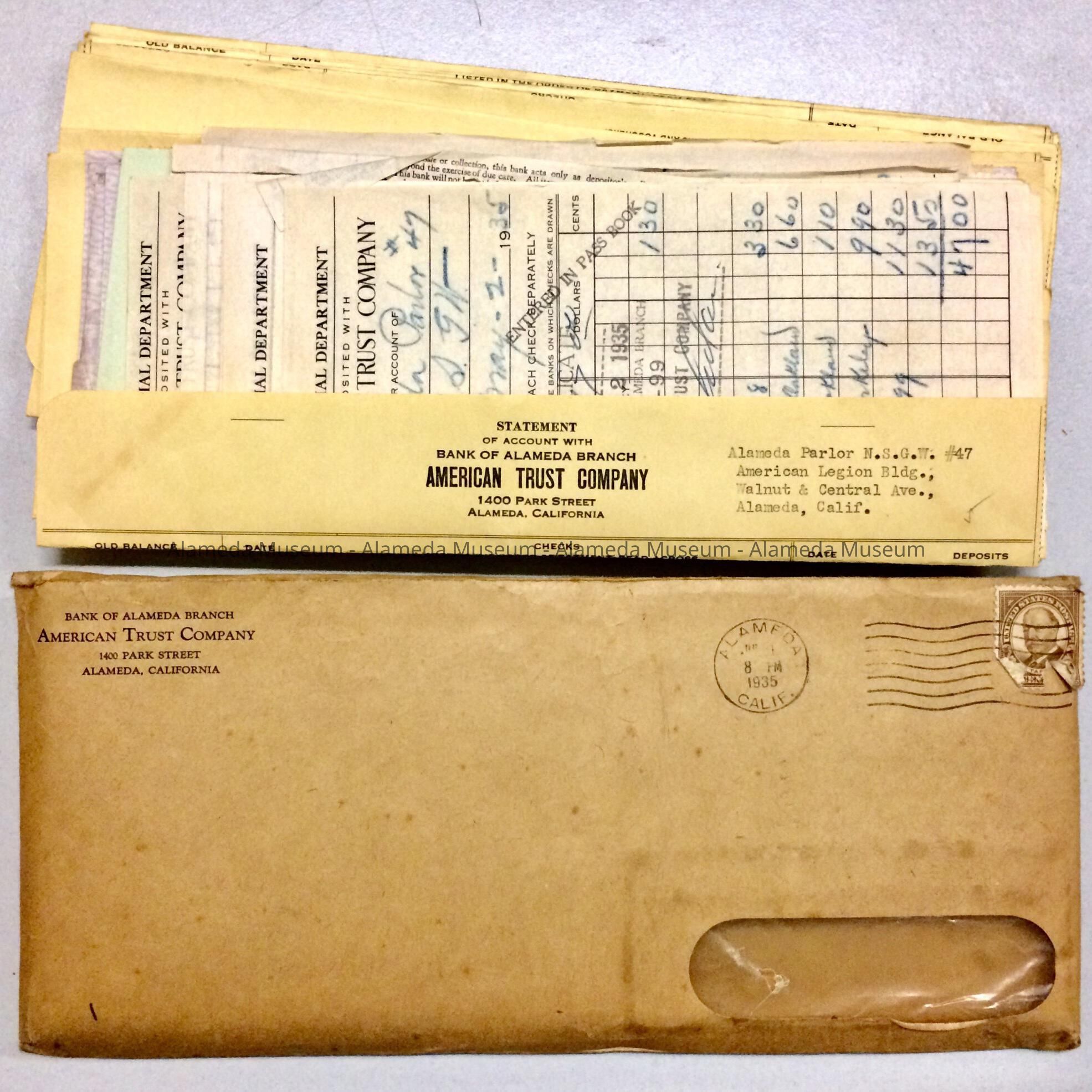 HISTORY OF OBJECTS: A COLLECTION OF BANK STATEMENTS AND DEPOSIT SLIPS FROM THE AMERICAN TRUST COMPANY, 1400 PARK STREET, ALAMEDA, PERTAINING TO THE ALAMEDA PARLOR NO. 47 OF THE NATIVE SONS OF THE GOLDEN WEST.