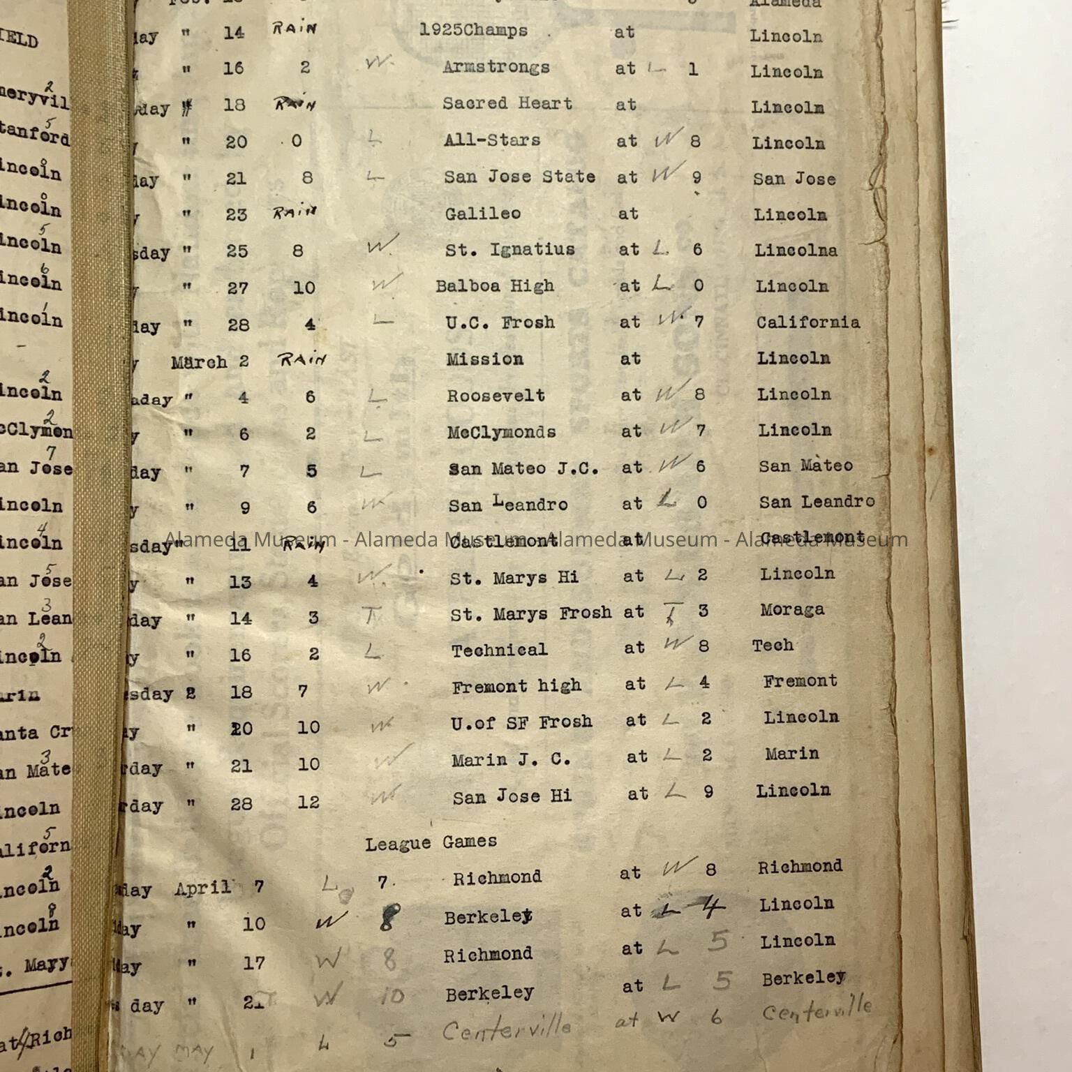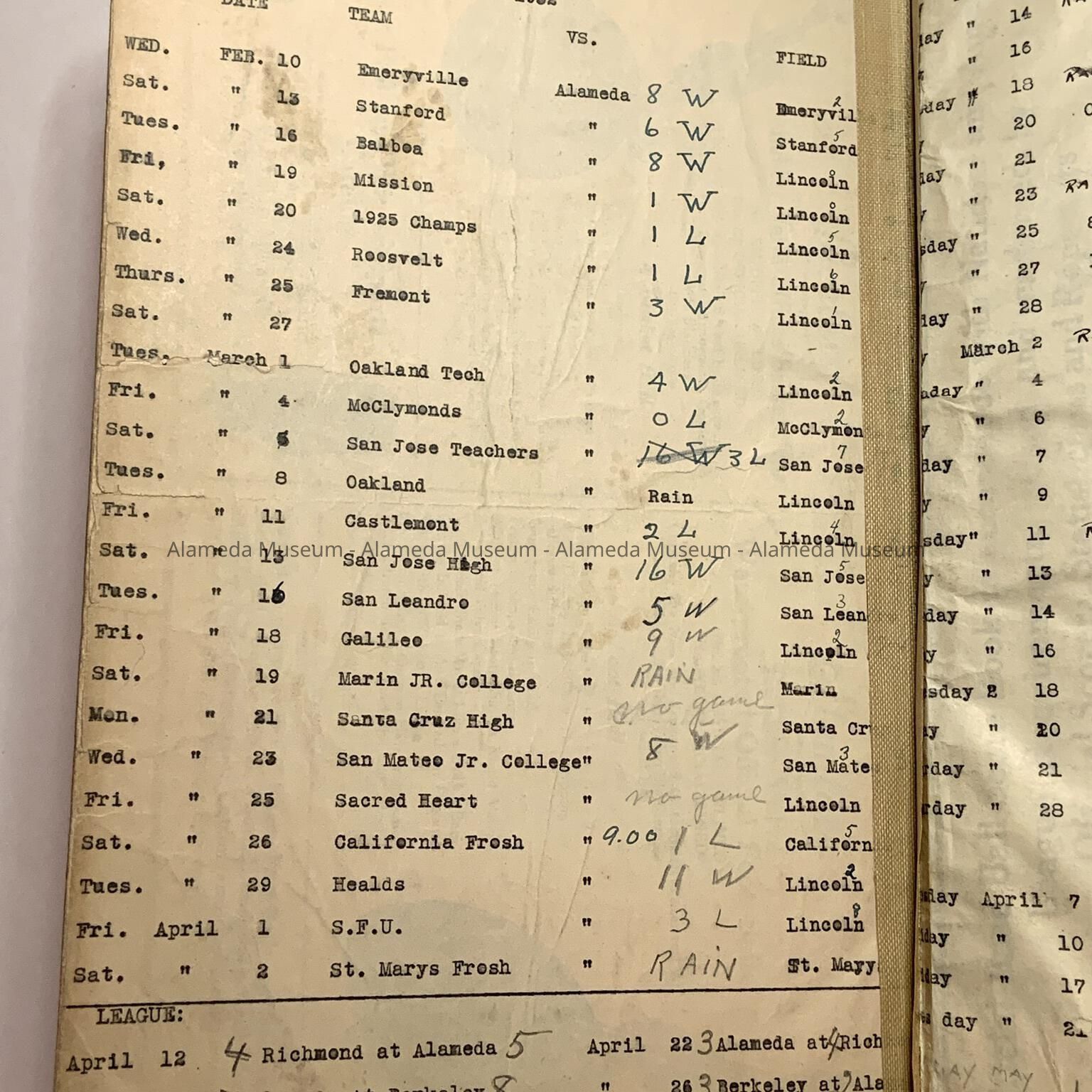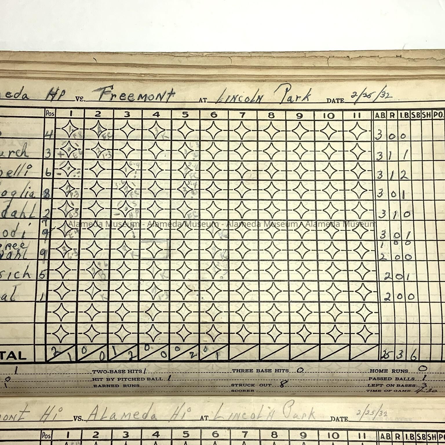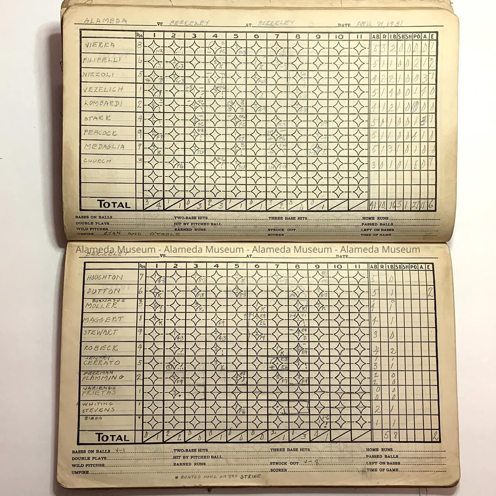 Baseball scorebook of Otto Rittler, with scores of games from the 1930sEntry/Object ID