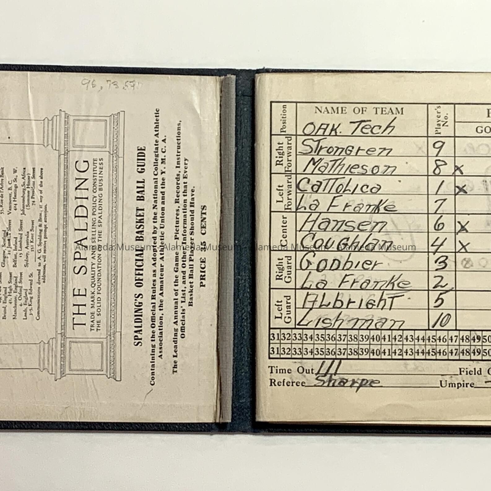 Basketball scorebook of Otto Rittler, with Scores of Alameda High School games for 1927Entry/Object ID