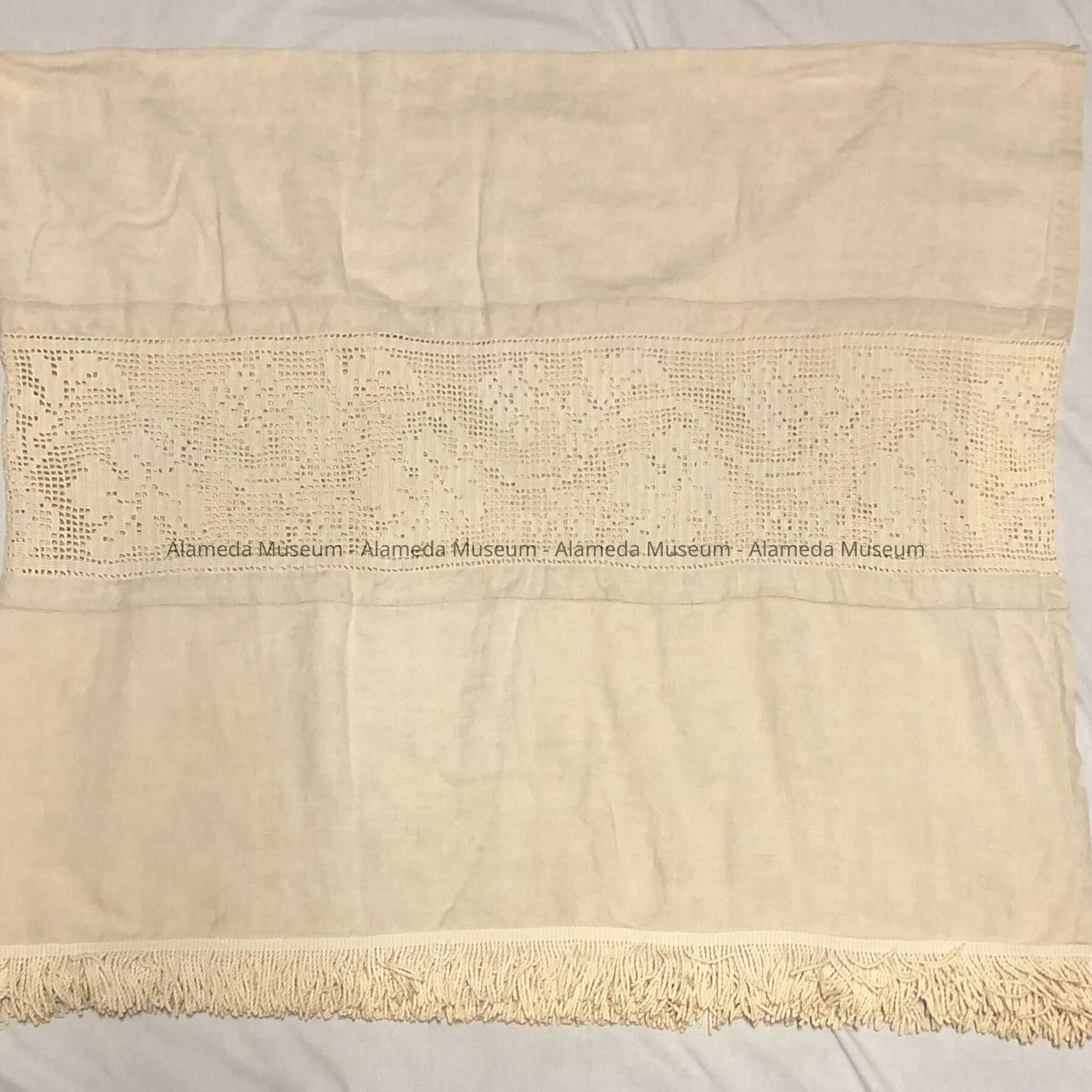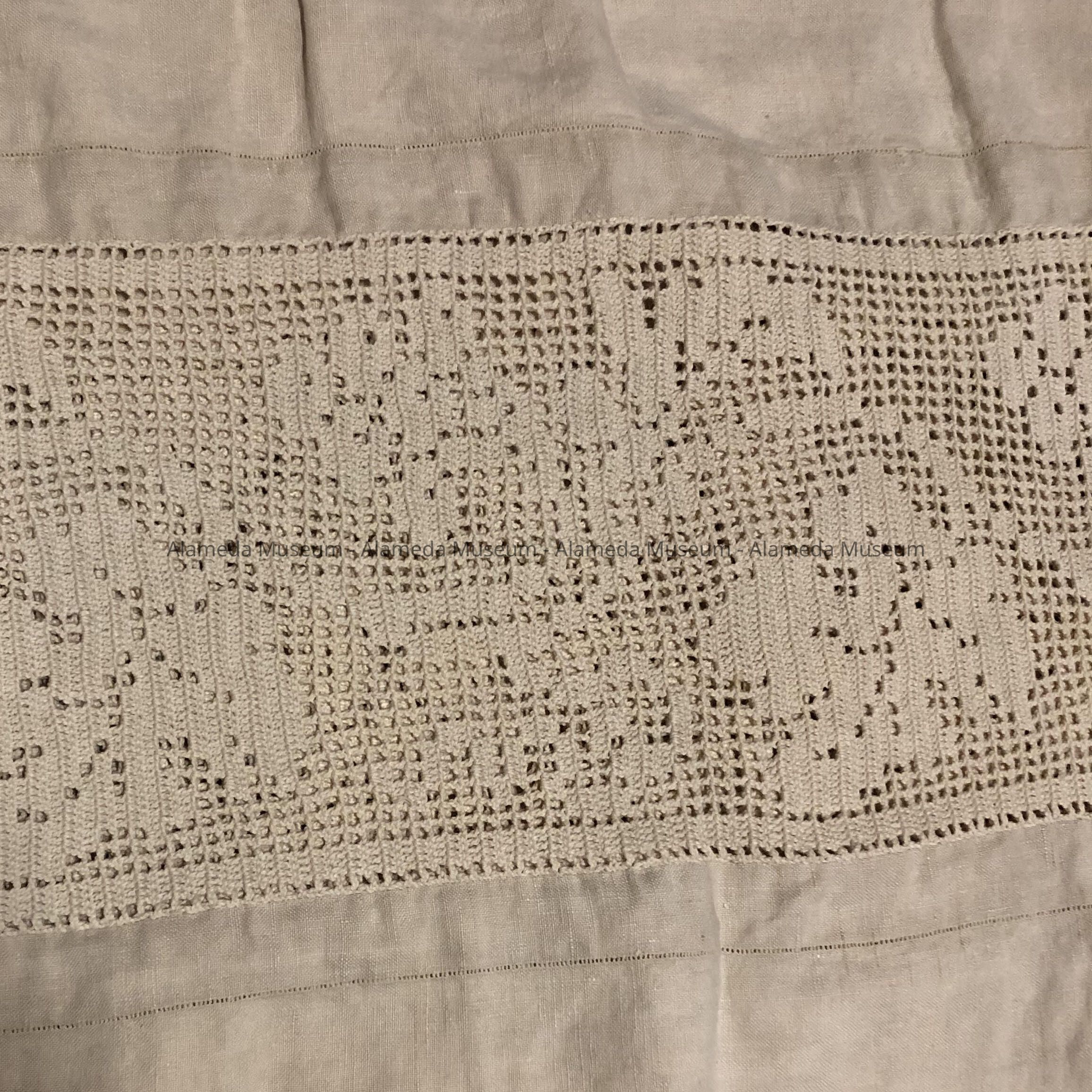 History of Object: Bedspread of unknown age that belonged to the McDonell family, old-time residents of Alameda.