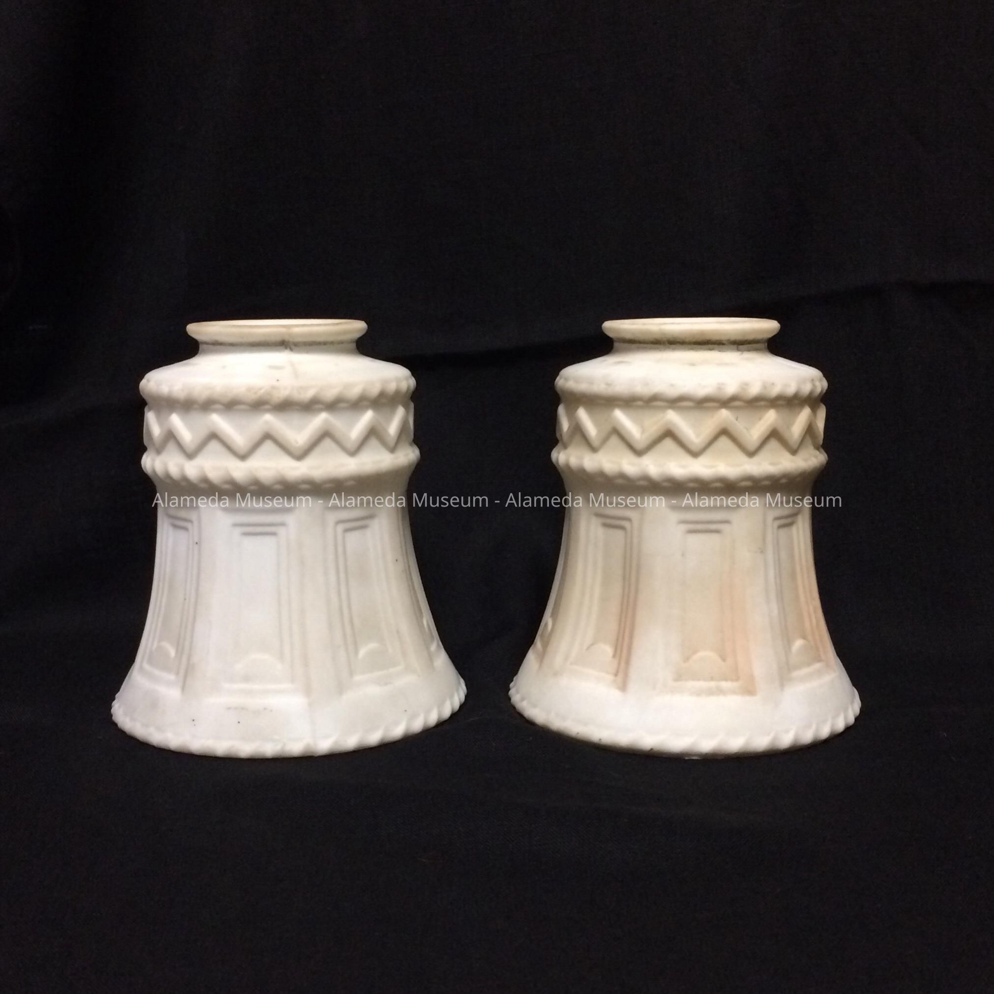 History of Object: Shades from the electric fixtures at 1419 Mound St., Alameda; built in 1912.