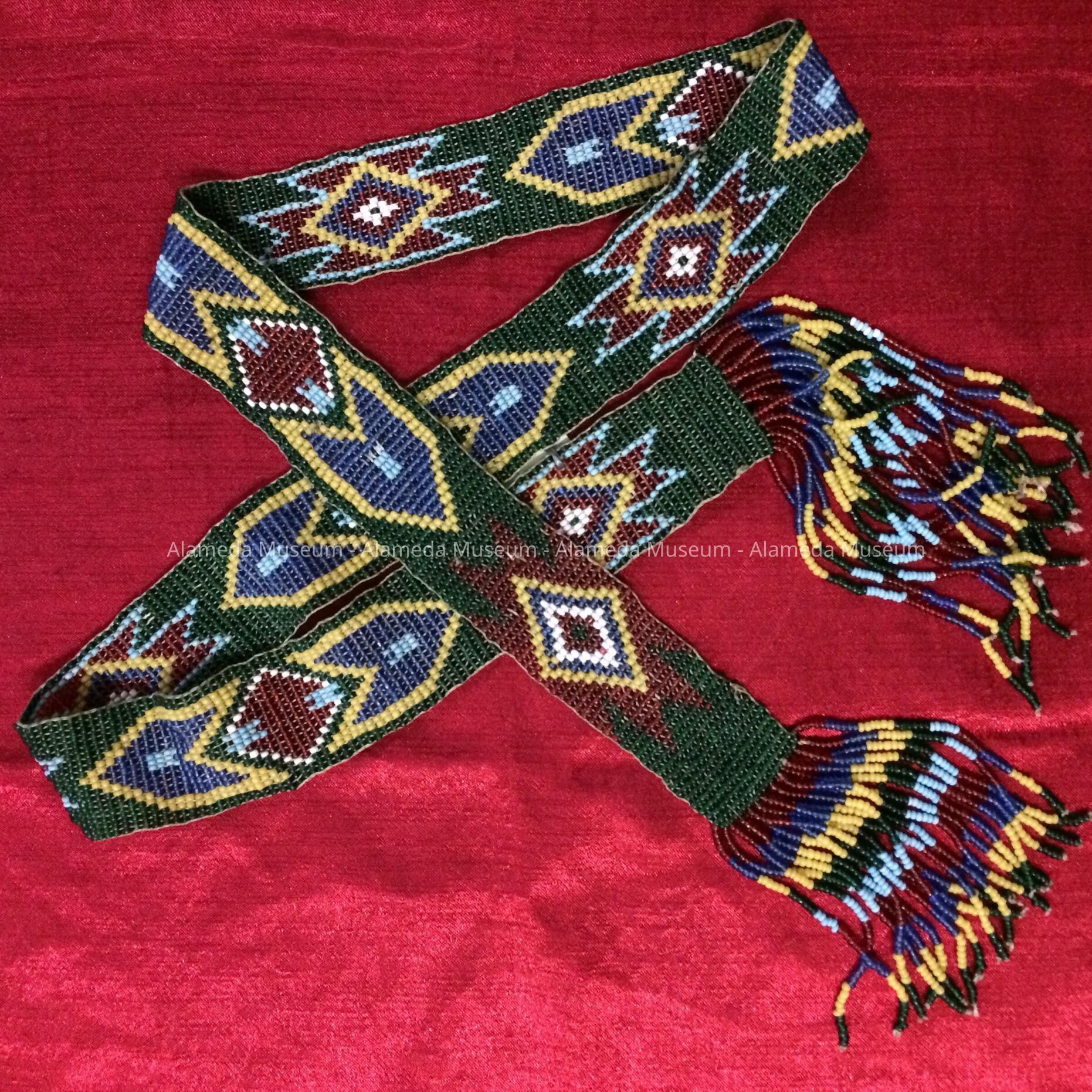 History of Object: Beaded belt that belonged to Mrs. Henry H. Meyers, old-time resident of Alameda. She and her family lived at 2021 Alameda Avenue.