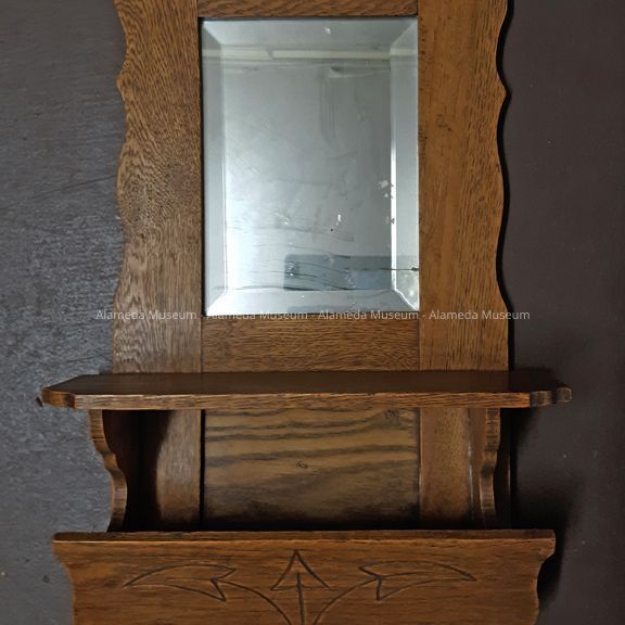 HISTORY OF OBJECT: A HANGING SHAVING MIRROR UNIT THAT BELONGED TO THE GUTLEBEN FAMILY, OLD-TIME ALAMEDA RESIDENTS.
