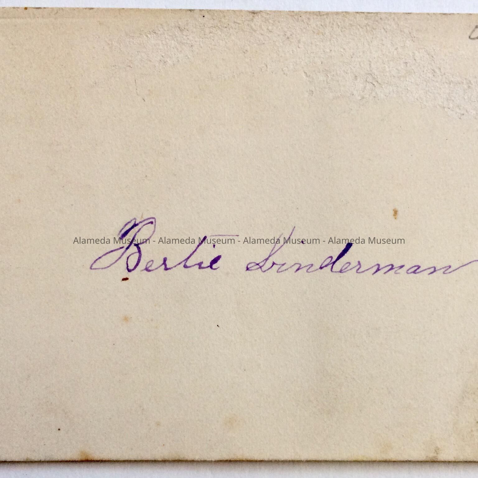 BIBLE CARD INSCRIBED, "BERTIE LINDERMAN," WHO WAS THE LATE HERBERT, SON OF J C LINDERMAN AND A MEMBER OF A PIONEER ALAMEDA FAMILY. HE WAS THE UNCLE OF MABEL KOLLMYER.