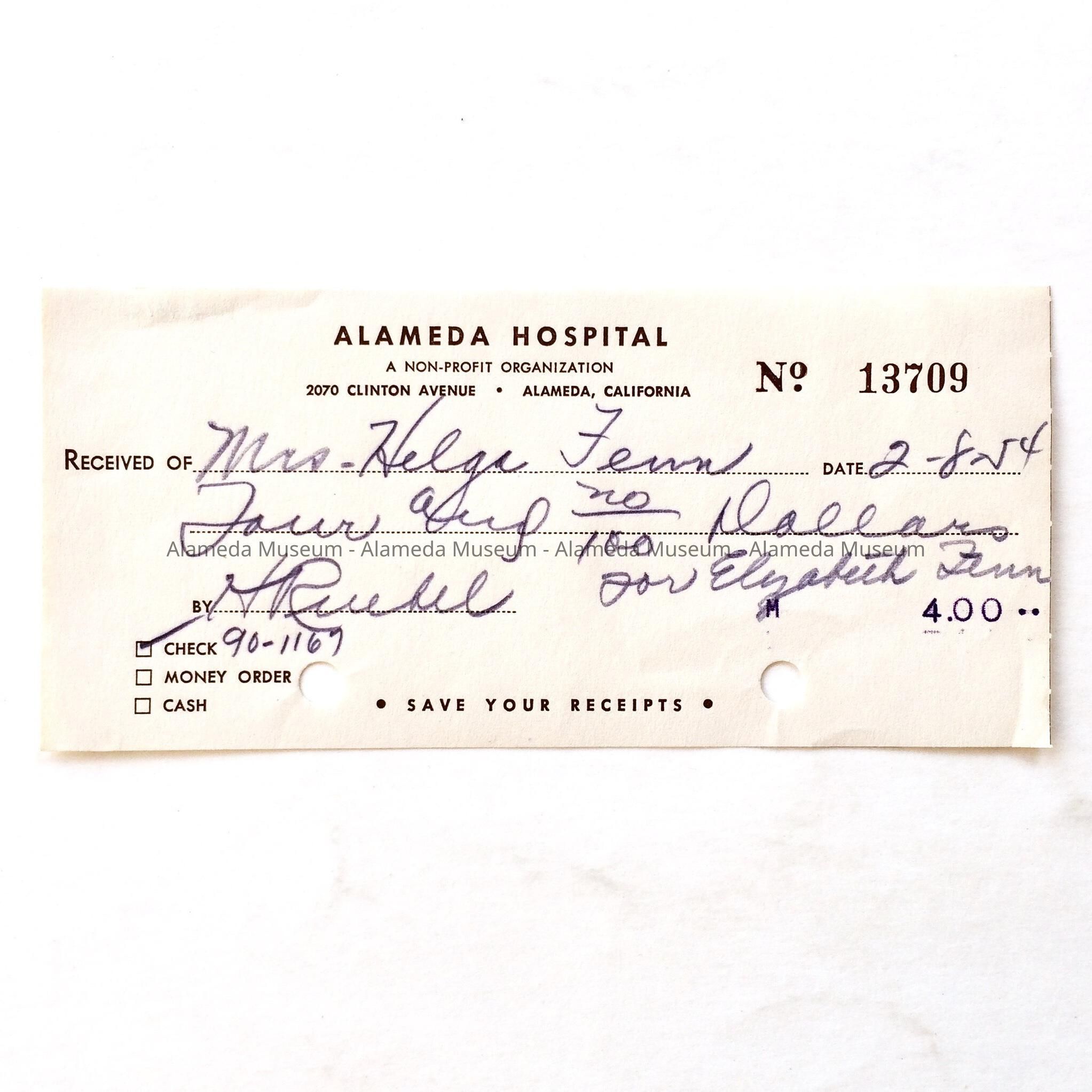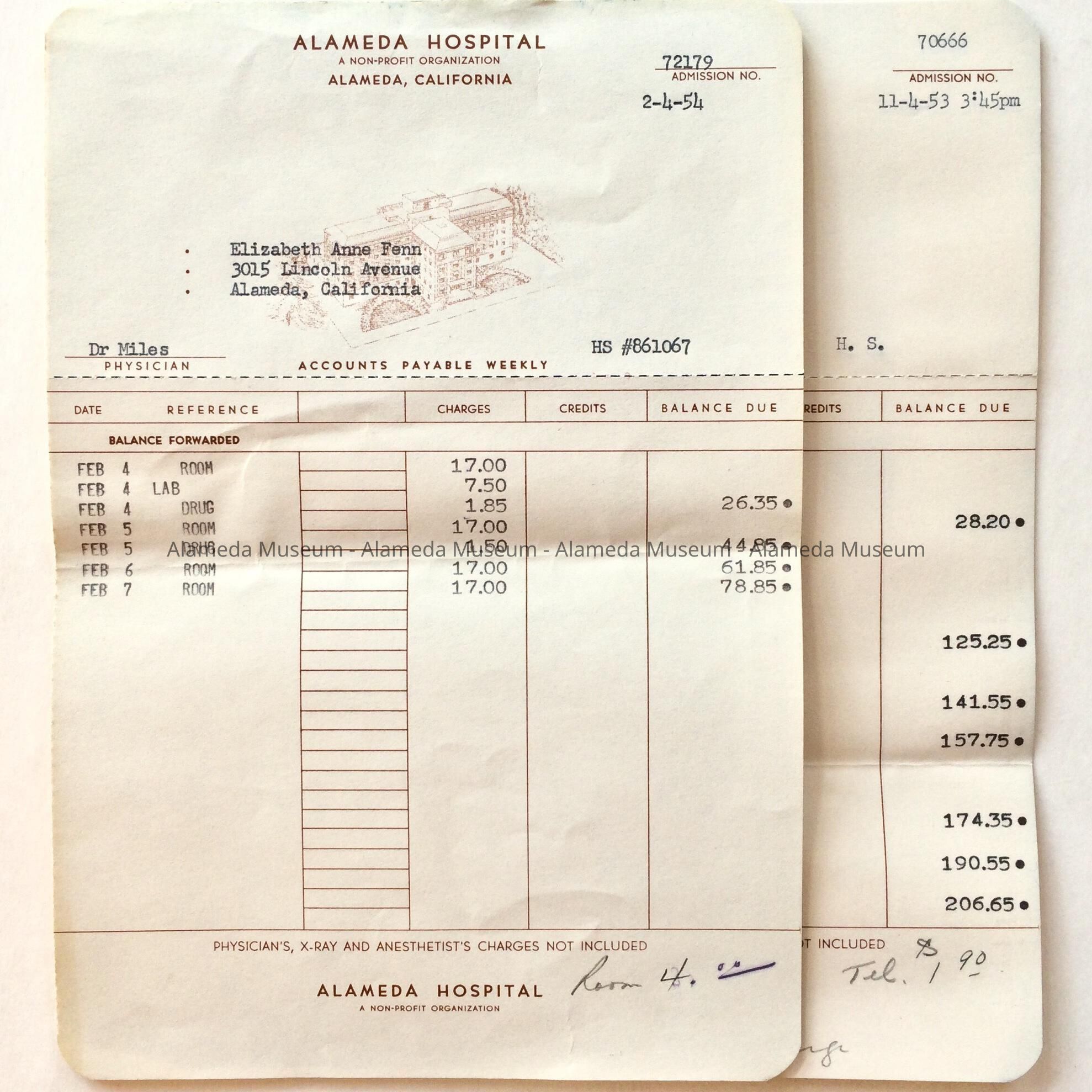 Bills and receipts from Alameda Hospital of the Fenn family, 1953-1954Entry/Object ID