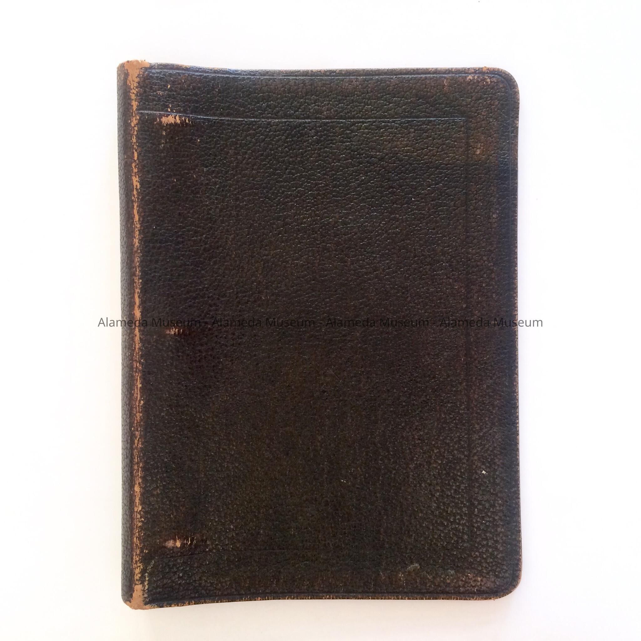 LOOSE-LEAF BINDER, COVER OF WHICH IS DARK BROWN COLORED LEATHER. CONTENTS ARE BLUE-RULED PAPER.